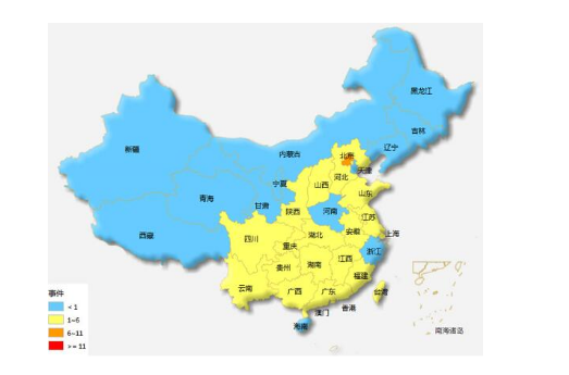 2、從輿情爆發(fā)區(qū)域來看,電力輿情預警地圖