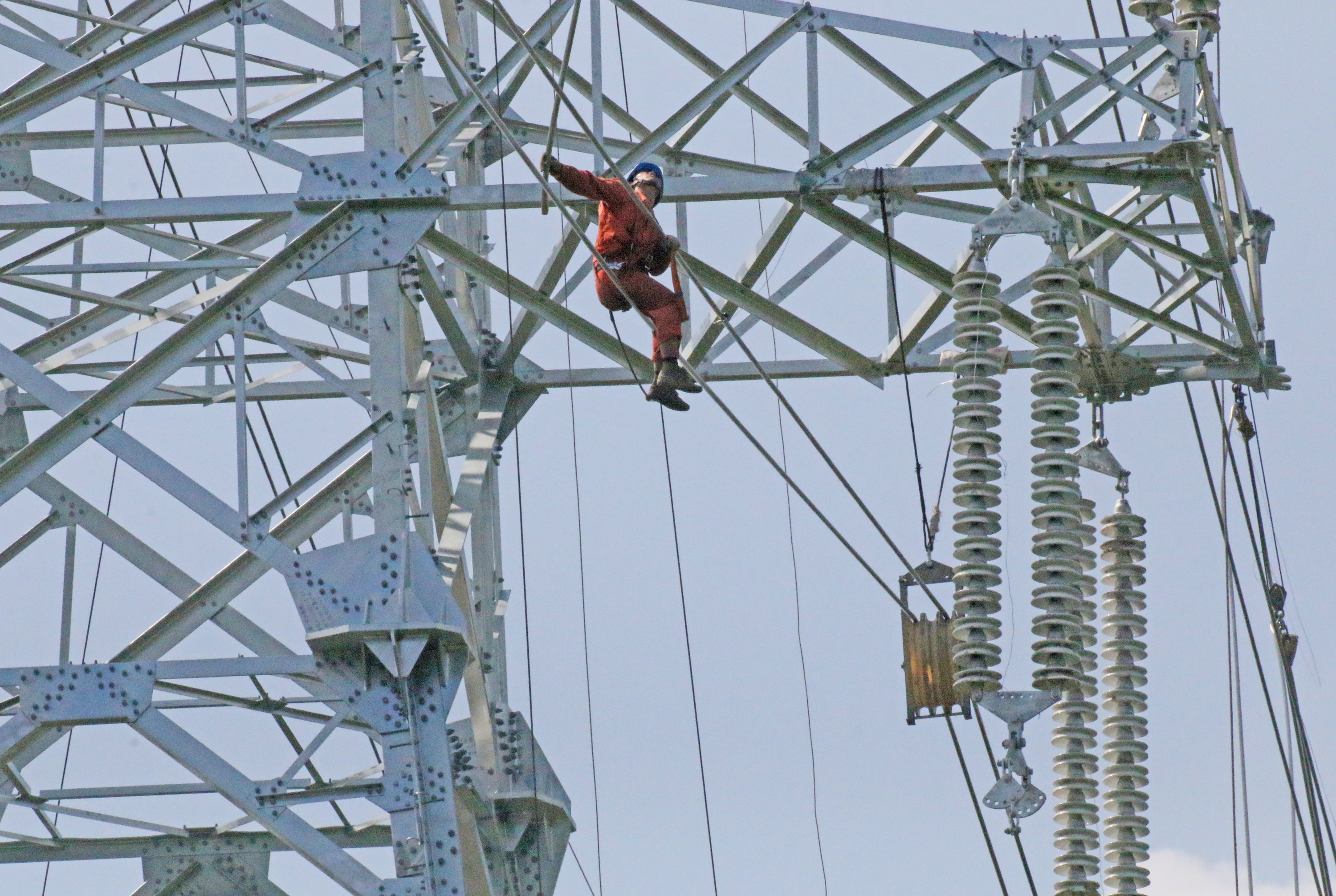 中國能源新聞網(wǎng)訊 (孫永興 管志強)8月26日,江蘇鹽城供電公司電力施工人員鏖戰(zhàn)秋老虎高溫,在東臺市城東高新區(qū)新架設(shè)的220千伏晶澳線41號耐張塔收緊導(dǎo)線及安裝附件,確保按期完成施工任務(wù),助江蘇省重大項目新能源晶澳太陽能科技有限公司早投產(chǎn)見效。該線路工程新建線路27.1千米(其中利用220千伏雙金線老塔補掛一回導(dǎo)線約8.05千米),新建鐵塔57基。