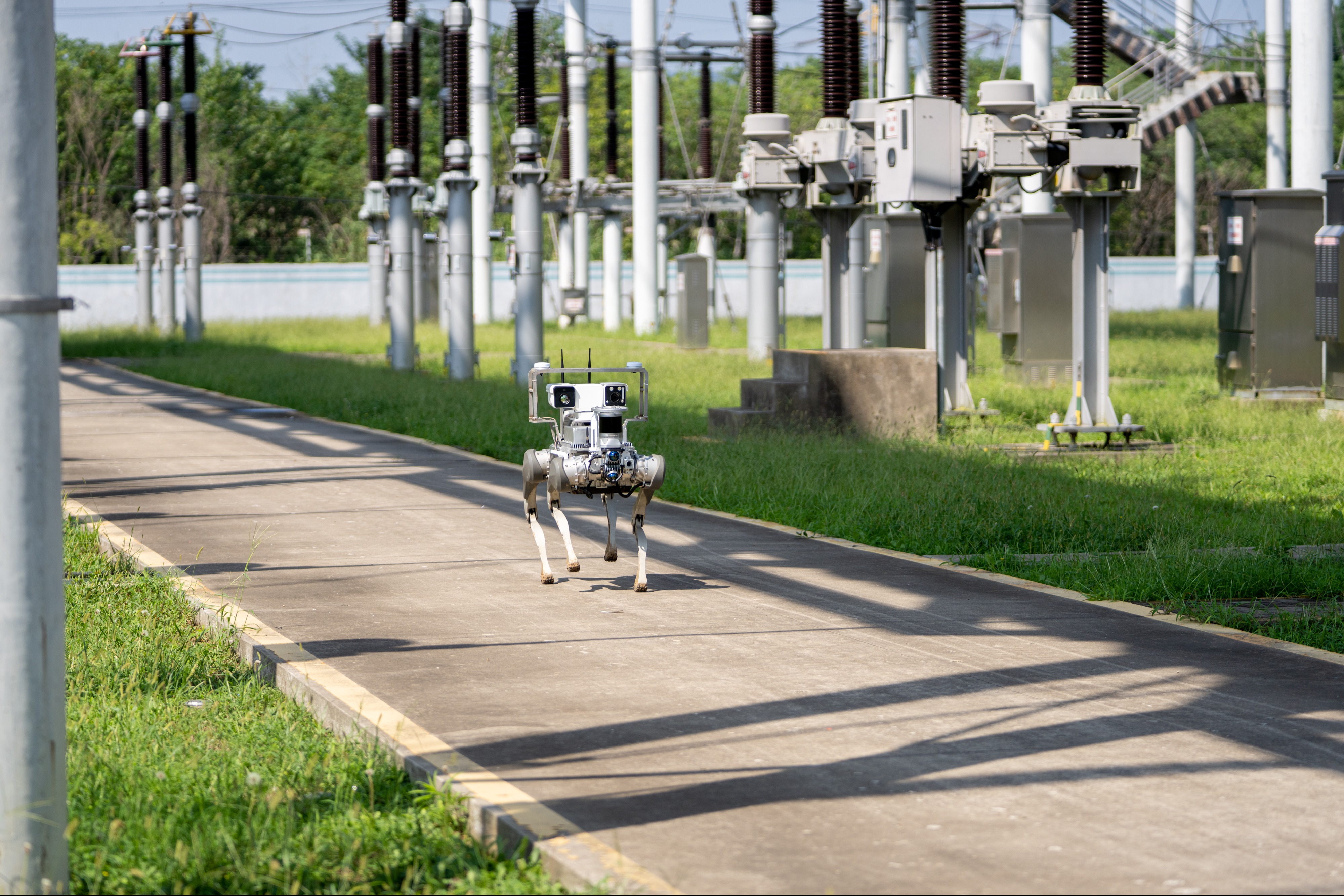 這款新型巡檢機器人代號“PCS-9180”,長相酷似“機器狗”,健壯有力的四肢上方安裝有雙光云臺、聲紋等多種高技術傳感器,貫穿多元感知融合技術,滿足變電站一線運維對越野越障、遠程運維、應急巡檢的新技術需求,擴大了巡檢覆蓋面,拓展了應用場景,提升了巡檢效率。