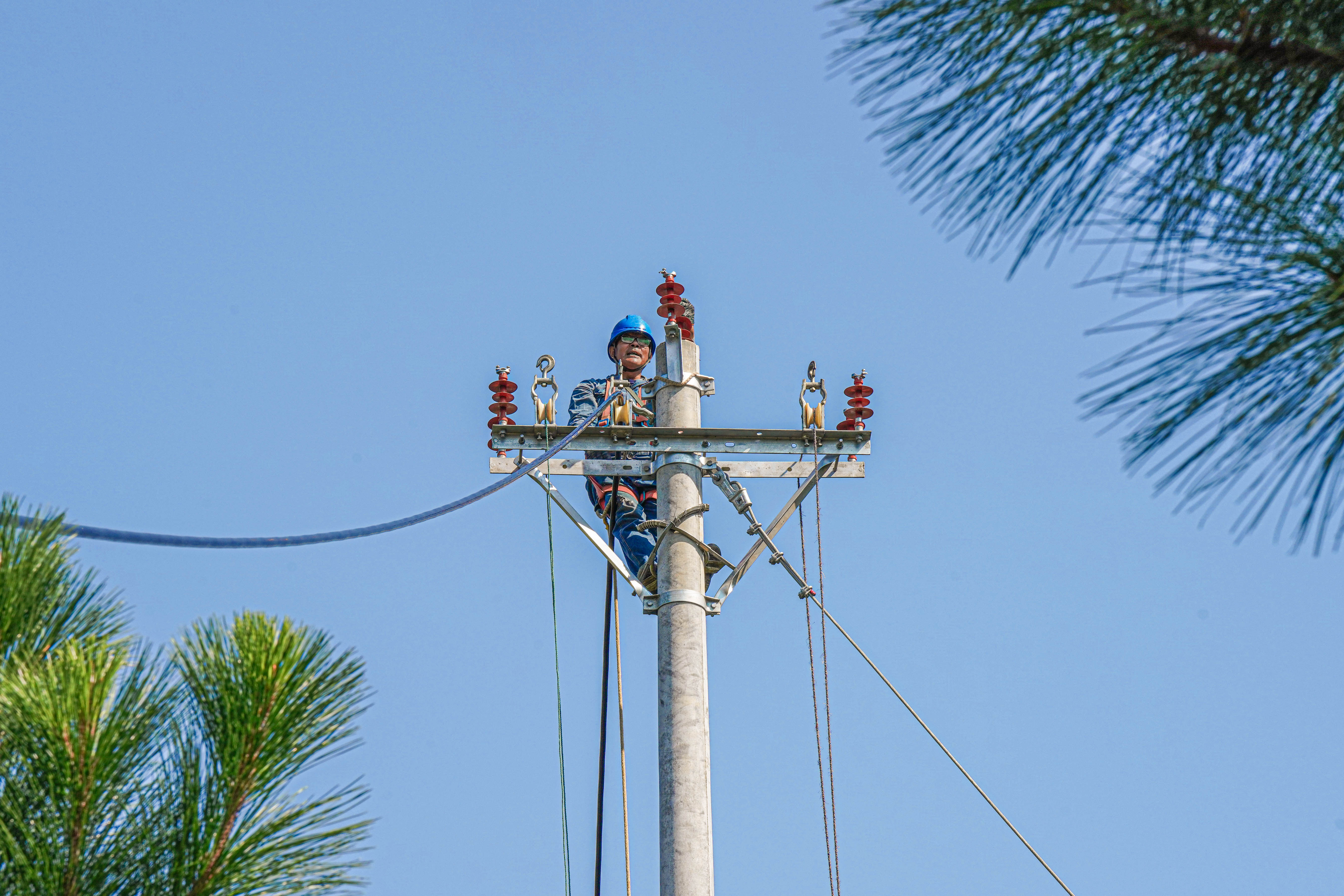 中國能源新聞網(wǎng)訊(張榮宸)10月18日,國網(wǎng)安徽合肥巢湖市供電公司作業(yè)人員在槐林鎮(zhèn)開展導(dǎo)線架設(shè)工作,為該鎮(zhèn)漁網(wǎng)產(chǎn)業(yè)園的建設(shè)及投入使用提供用電保障。