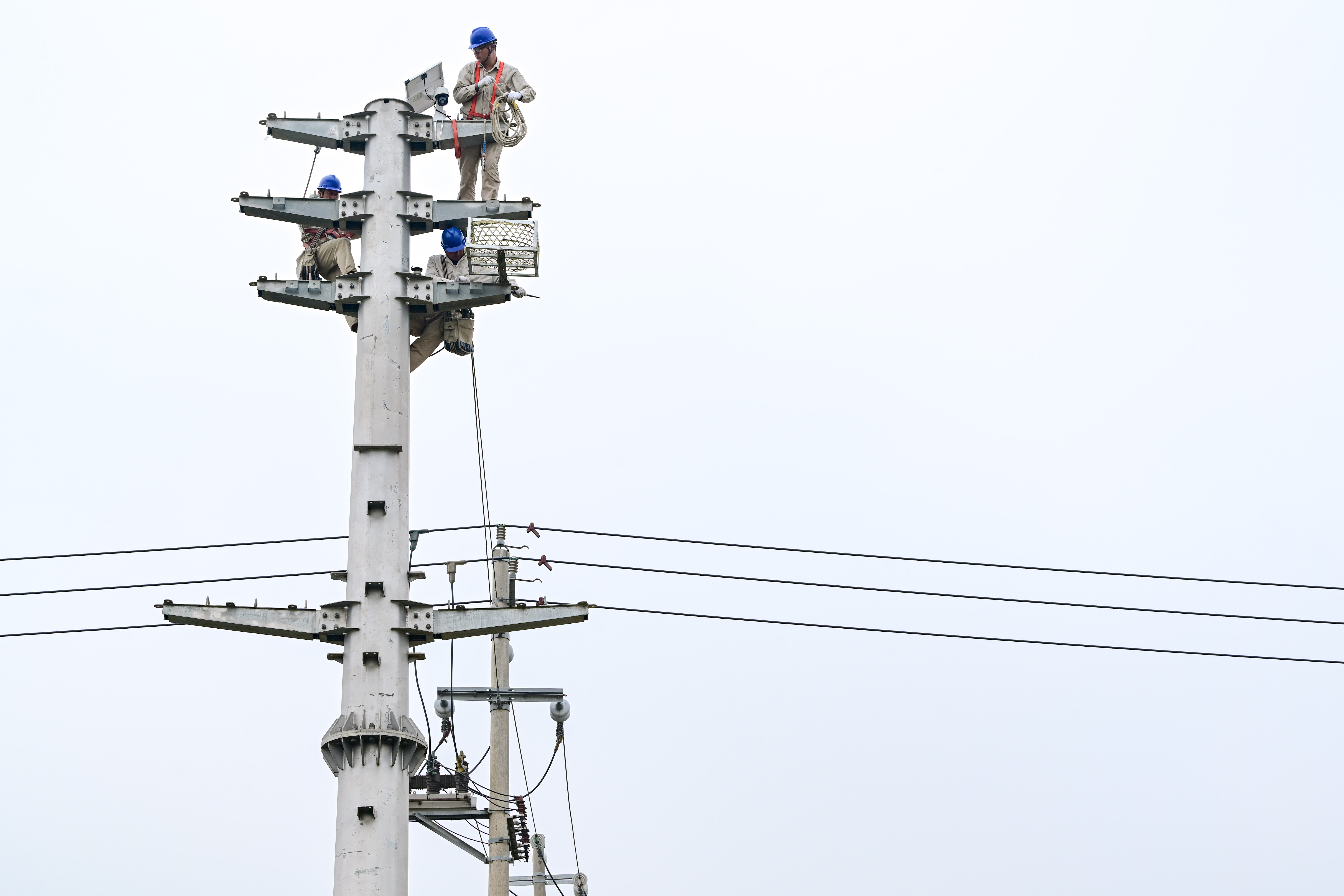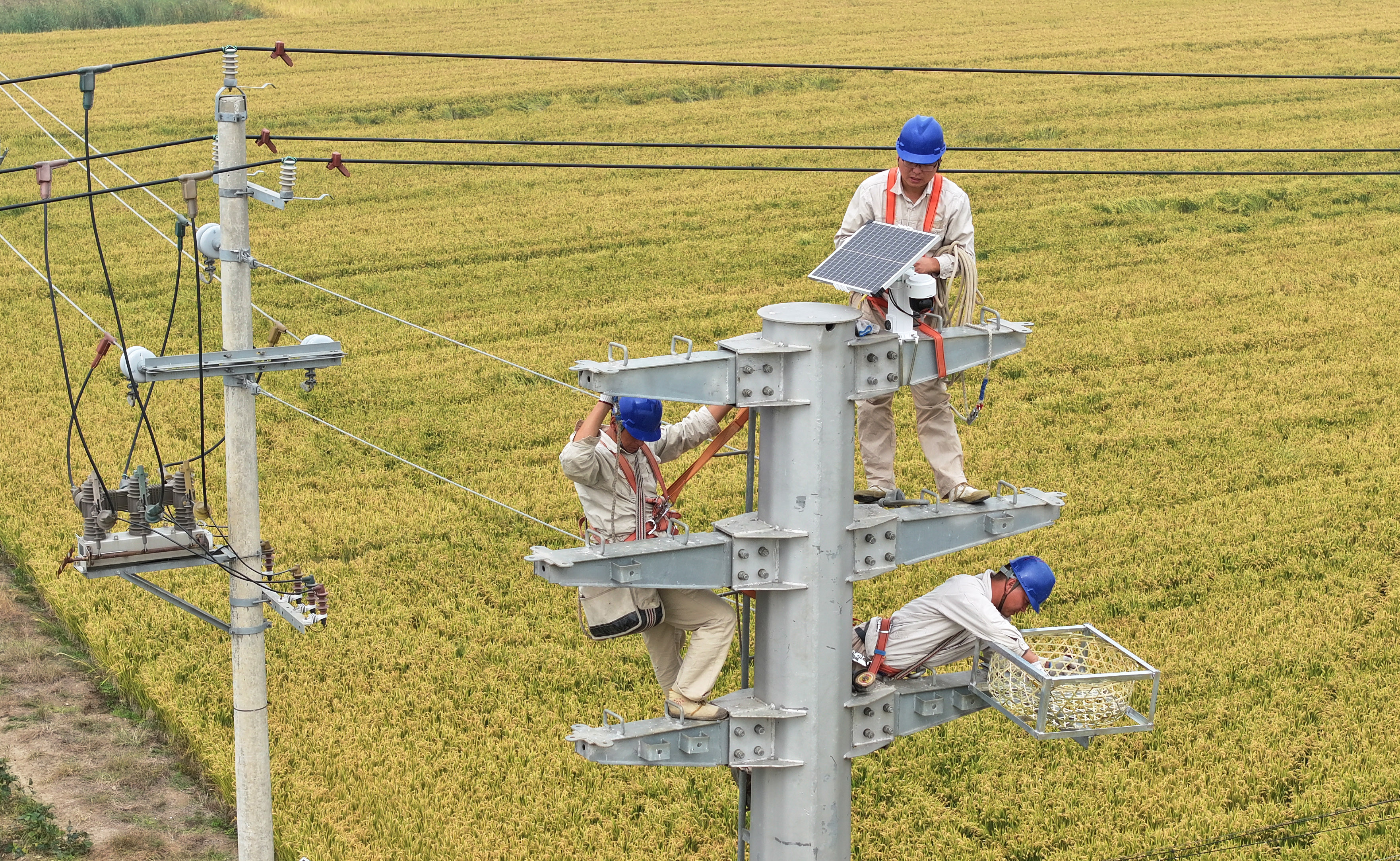 中國能源新聞網訊(梁德斌 肖春龍)10月19日,國網江蘇金湖縣供電公司組織員工在金北街道應集村10千伏腰灘線102號桿塔上安裝人工鳥巢和太陽能監(jiān)測設備。今年開始,金湖縣供電公司計劃對15條10千伏線路有鳥害的桿塔上安裝人工鳥巢,以此解決喜鵲在桿塔上“違章建房”帶來的電網安全事故隱患。