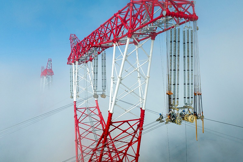 日前,江西省南昌縣蔣巷鎮(zhèn)的贛江南支流高空,安徽送變電工程有限公司施工人員在緊張架設武漢至南昌1000千伏特高壓線路大跨越工程。整個工程建成后將進一步優(yōu)化區(qū)域電網(wǎng)網(wǎng)架結(jié)構(gòu),支撐大規(guī)模綠色清潔能源的接入消納,提升湖北與江西的省間電力互補互濟能力。鄭賢列攝(影像中國)