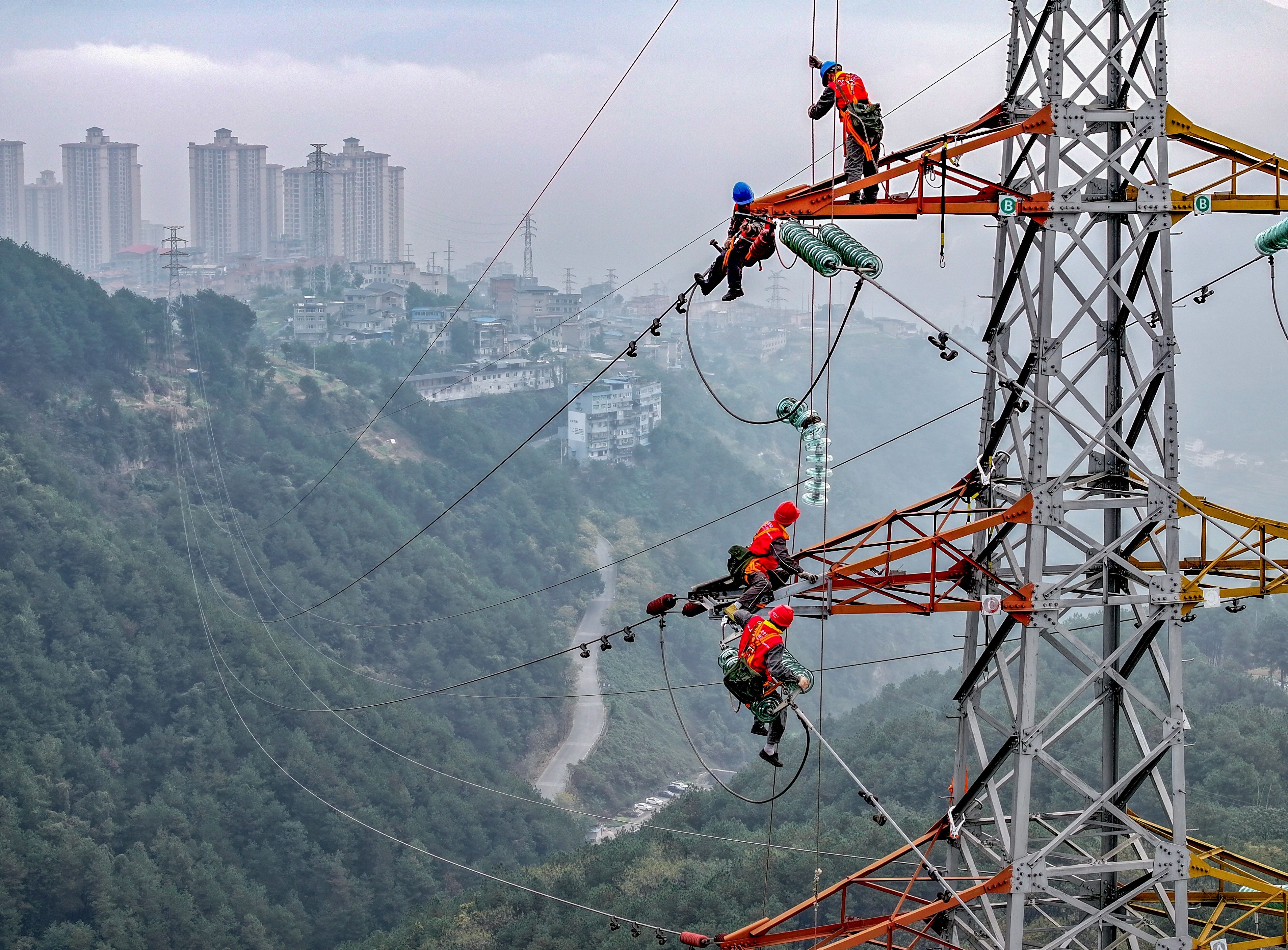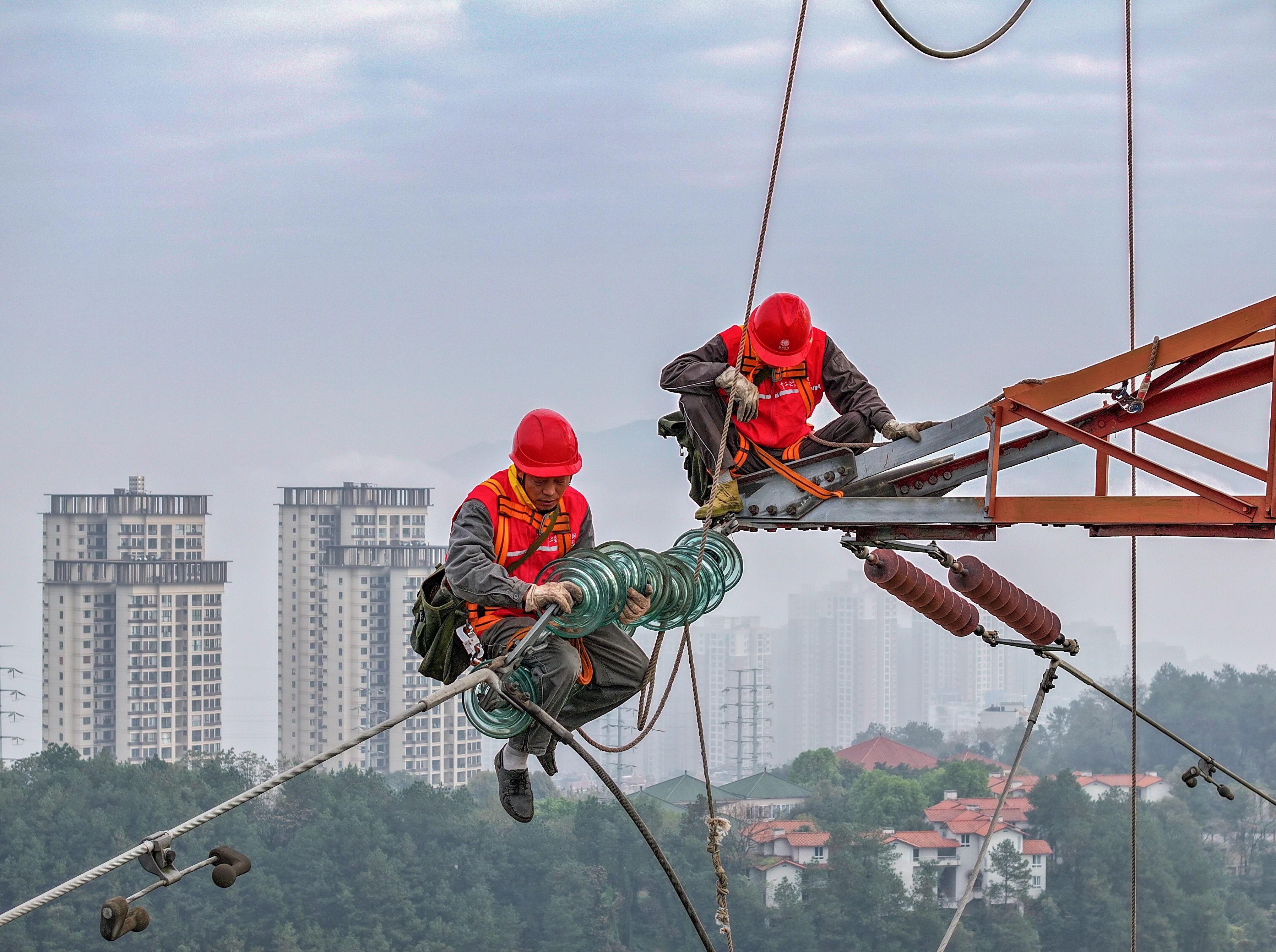 中國能源新聞網(wǎng)訊(游波)12月4日,重慶川東電力公司楊勝林、羅新平等員工在涪陵森林公園對110千伏龍坪線28號鐵塔更換絕緣子,保障冬季用電安全穩(wěn)定運行。