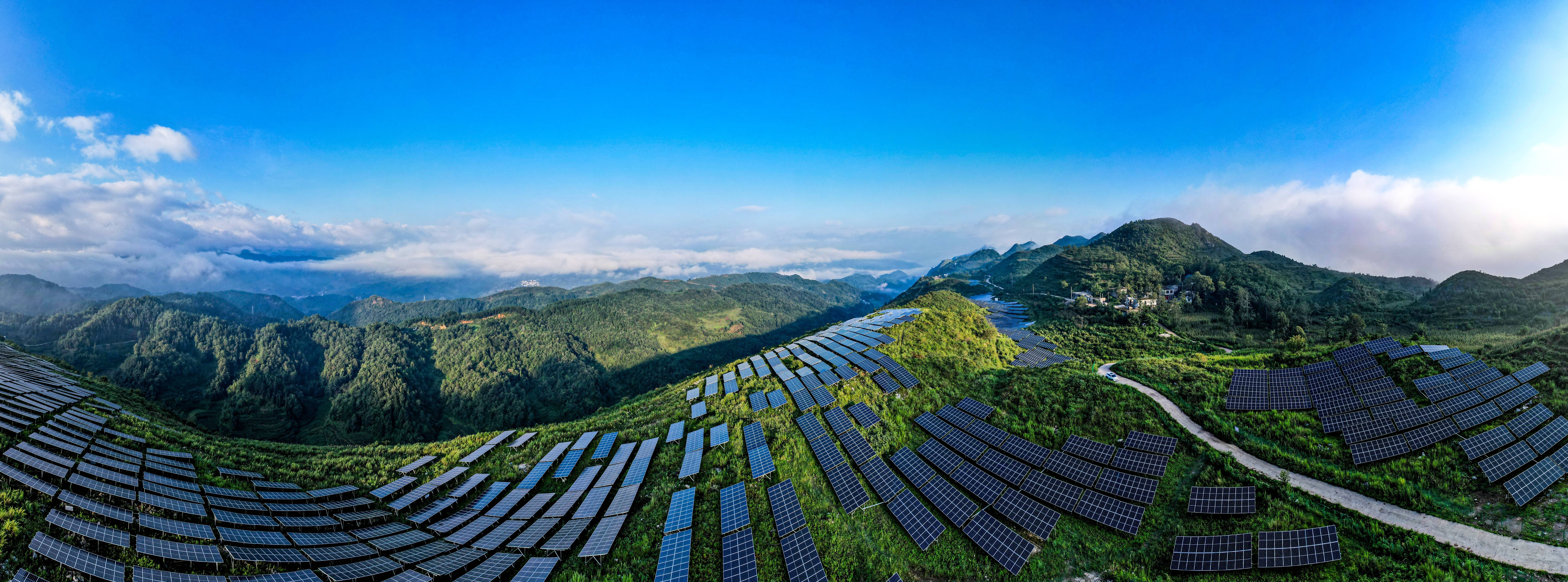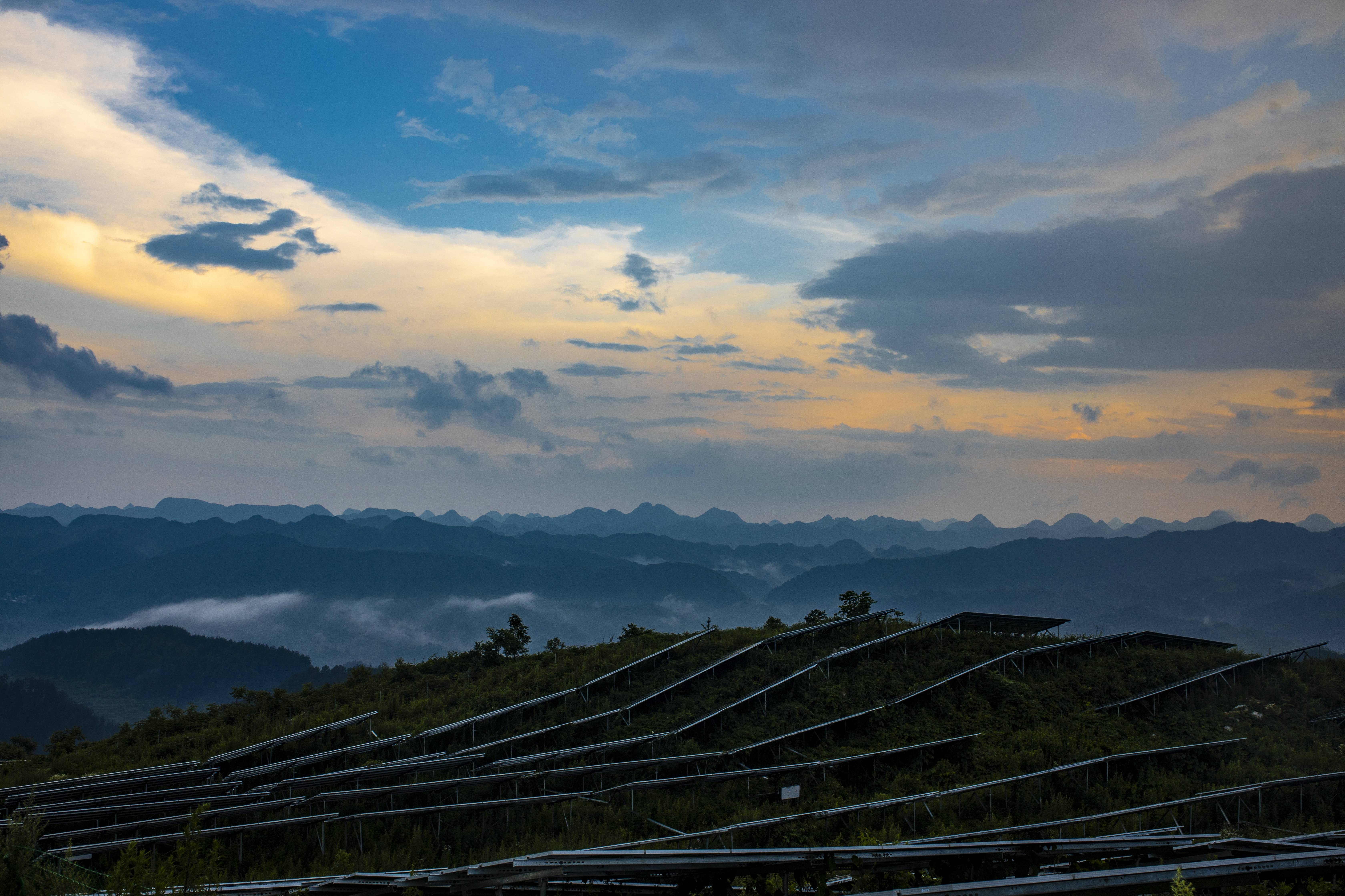 項目建設(shè)地位于高嶺深谷間,云海、晚霞、花海、白雪,四季變換,老虎大坪的光伏輝映著青山,閃耀著五彩的清潔能源之光。