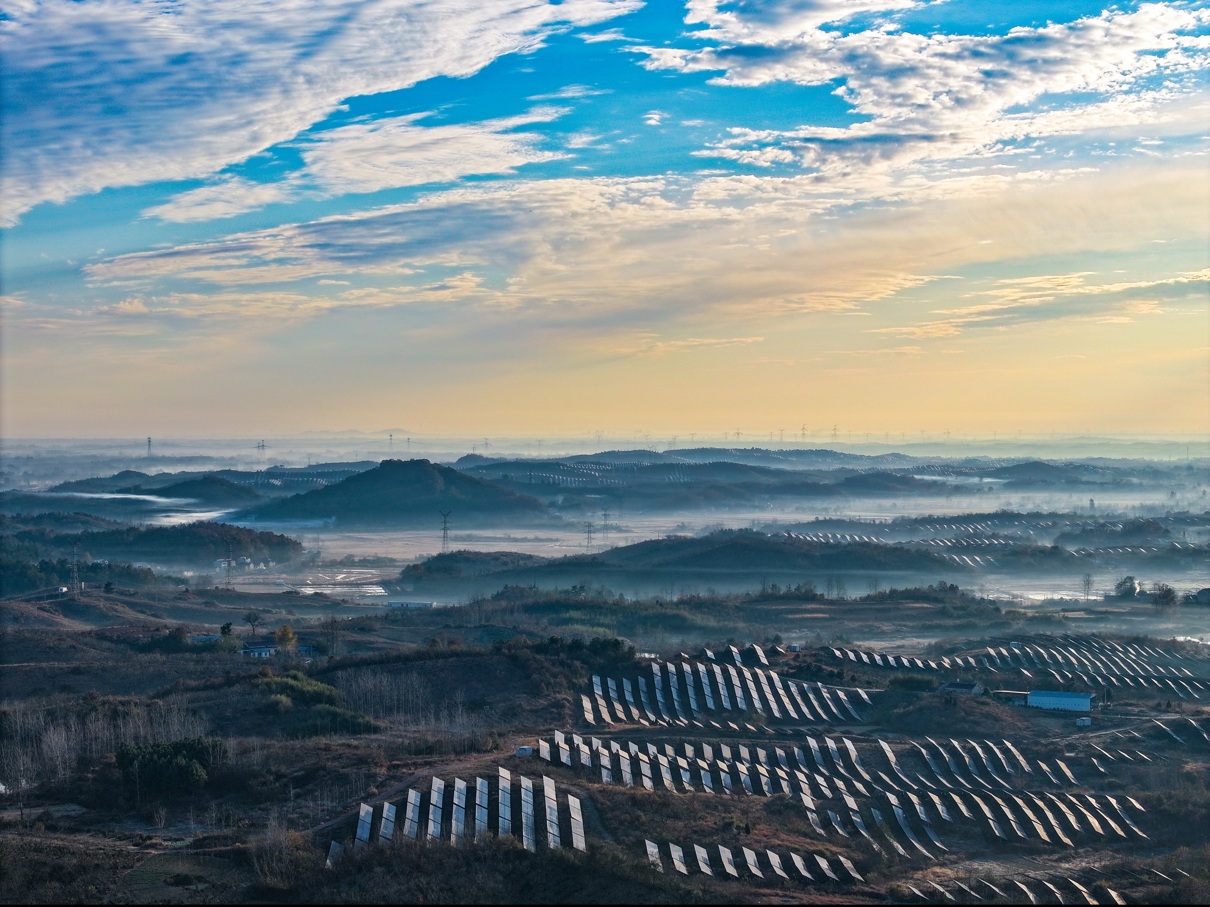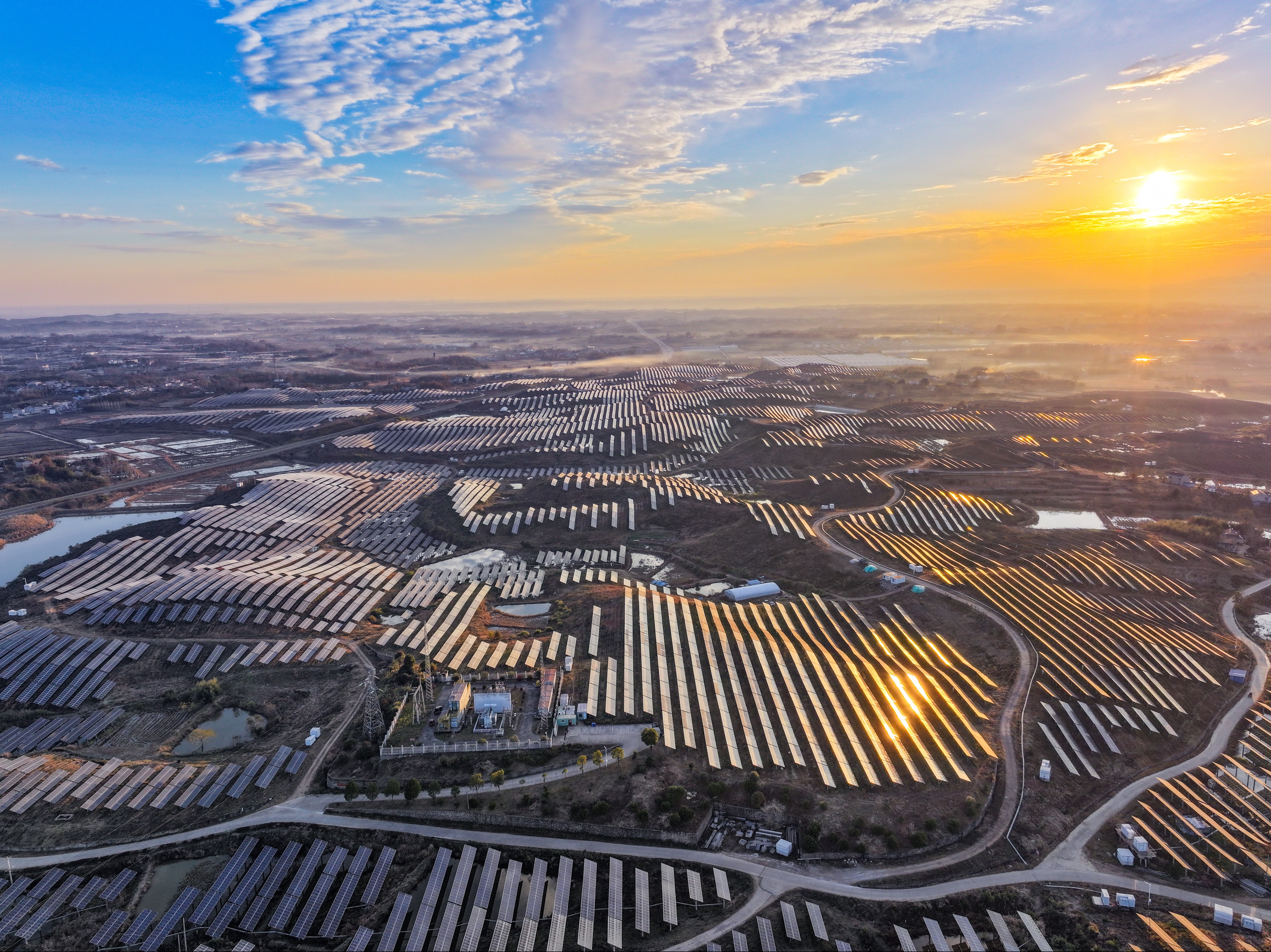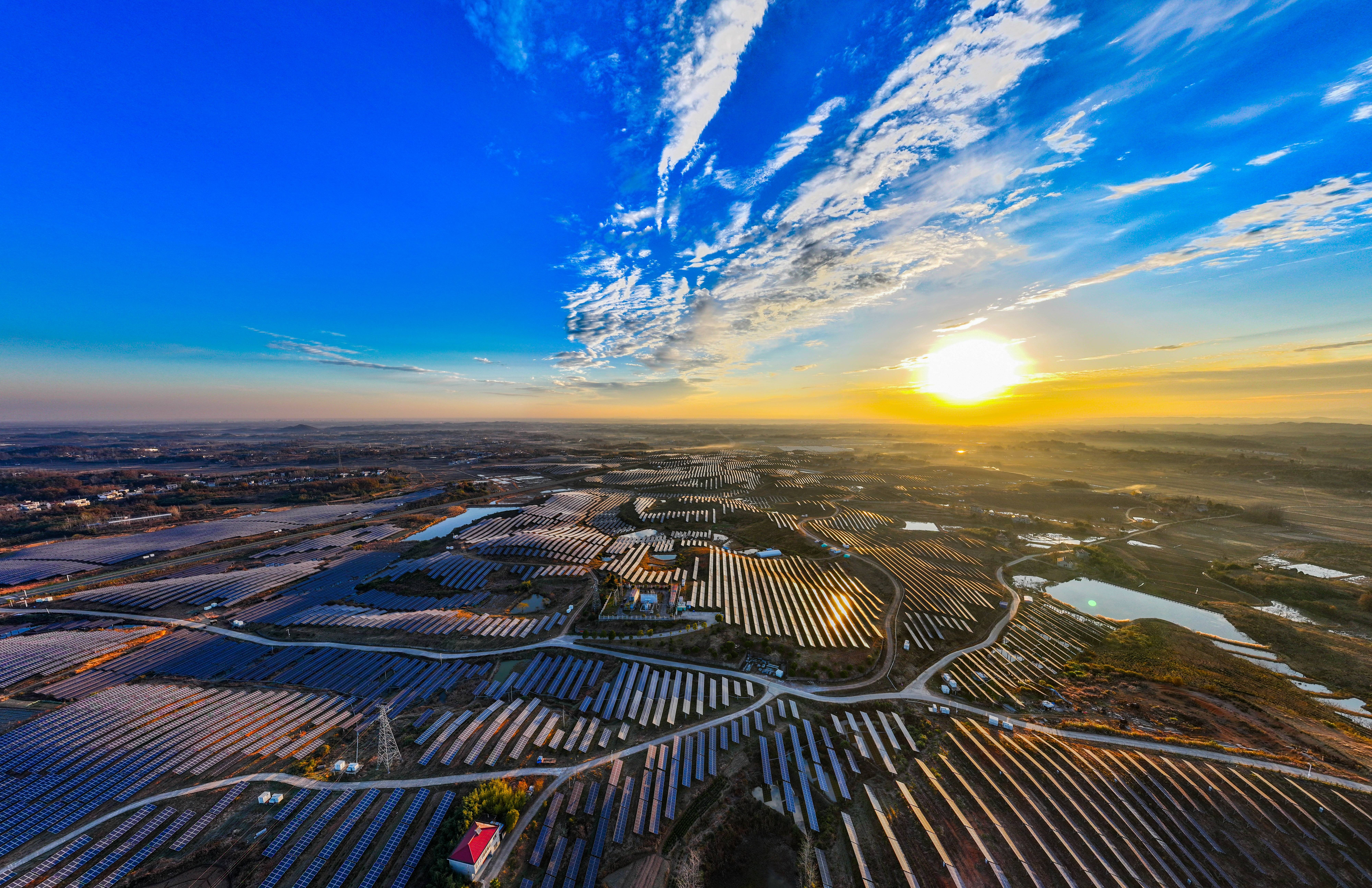 中國能源新聞網(wǎng)訊(石義良 張朋)安徽省金寨縣白塔畈鎮(zhèn)劉沖村,連綿起伏的丘陵上,信義白塔光伏電站一塊塊深藍(lán)色光伏板連成一片,一望無際,猶如一片“藍(lán)海”,朝陽映照下,向電網(wǎng)輸送著清潔能源。