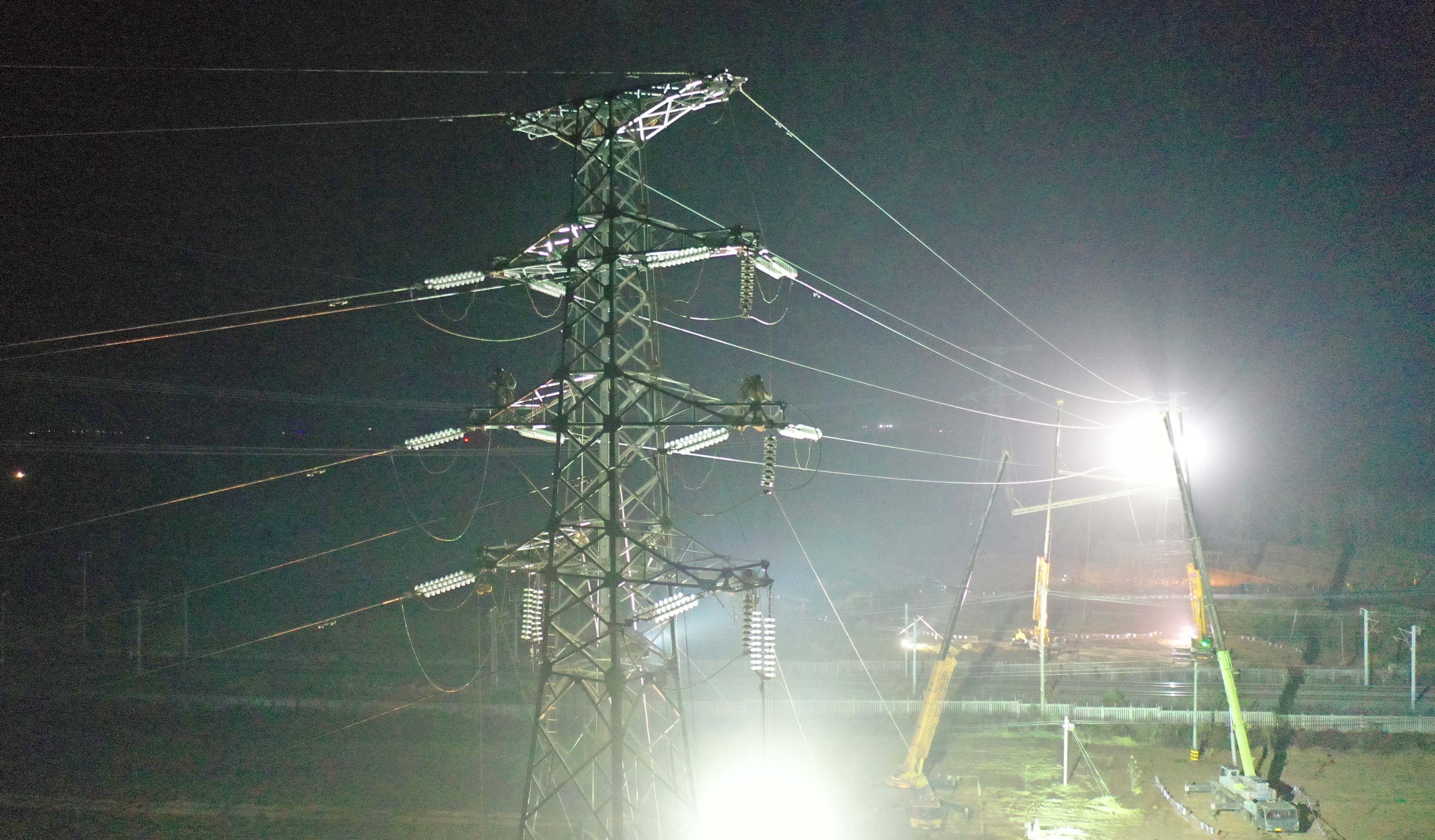 中國能源新聞網(wǎng)訊(宋衛(wèi)星 陳焱)12月10日凌晨,在安徽省全椒縣六鎮(zhèn)鎮(zhèn)李店村,施工人員冒著嚴(yán)寒利用雙吊車平衡桿保護(hù)裝置在110千伏跨越滬漢蓉高鐵進(jìn)行高空架線施工。當(dāng)日,國網(wǎng)安徽省滁州市供電公司組織100余名施工人員完成220千伏黃栗樹變電站至220千伏儒林變電站110千伏輸電線路開斷接入110千伏松元變電站工程,成功跨越滬(上海)漢(武漢)蓉(成都)高鐵架線施工,在寒潮來臨之前,確保工程按期投產(chǎn),保障當(dāng)?shù)厝罕娚a(chǎn)生活用電無憂。