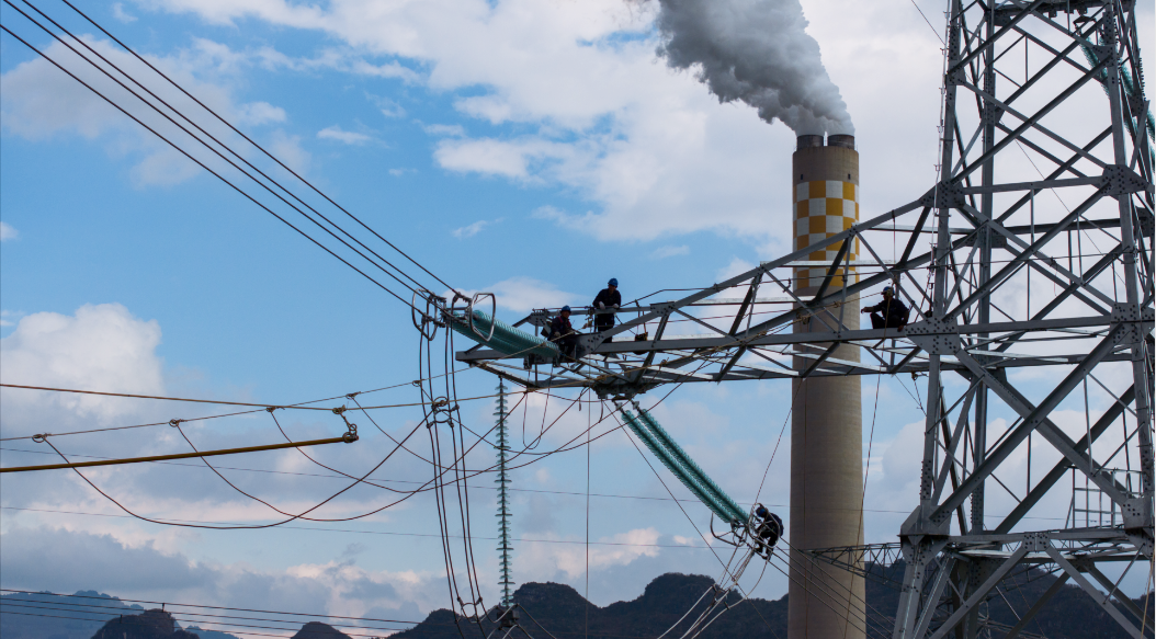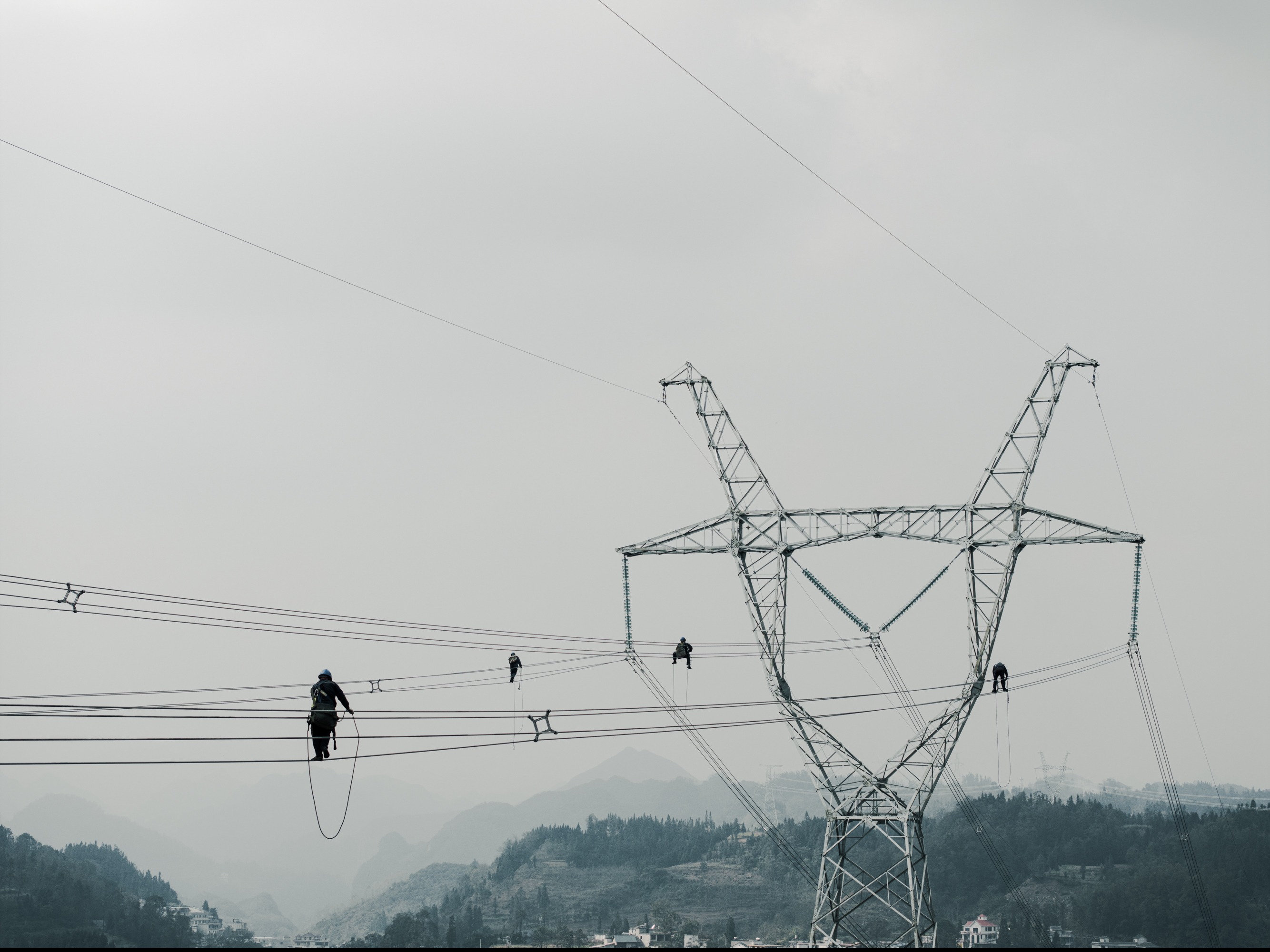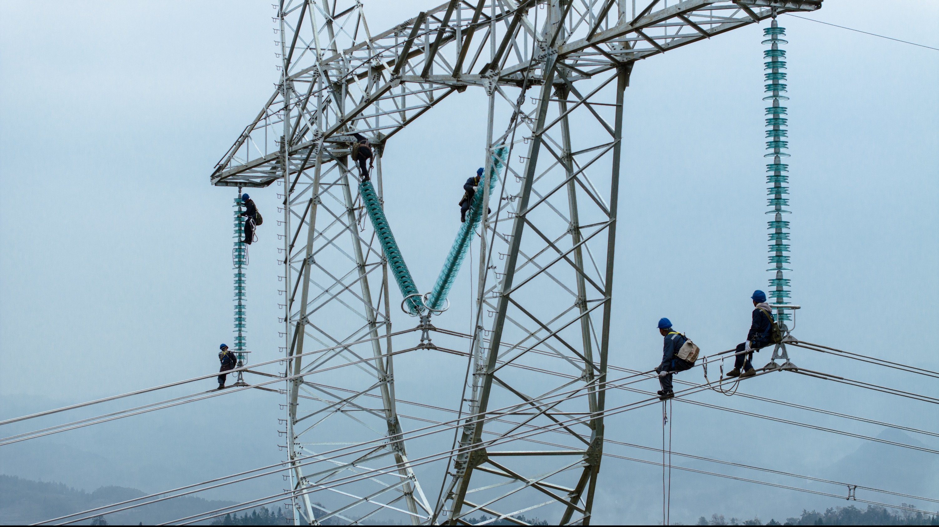 圖為12月13日,南方電網(wǎng)施工人員正在緊張施工。