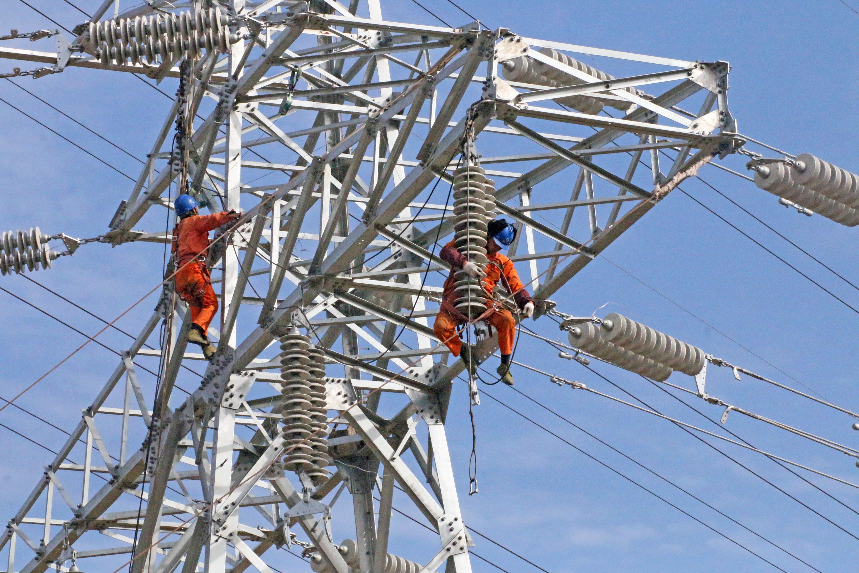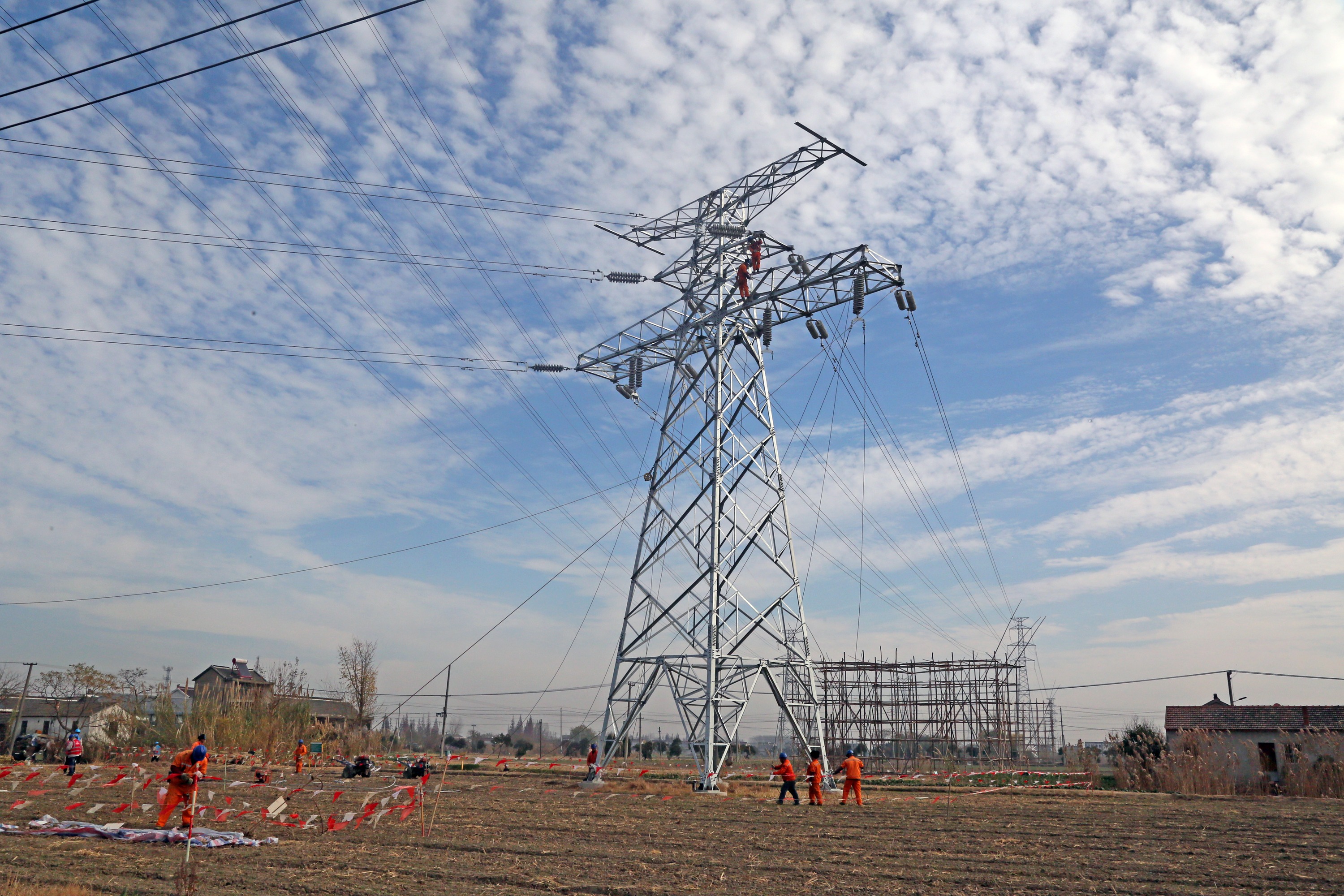 中國(guó)能源新聞網(wǎng)訊(孫永興 管志強(qiáng))12月9日,江蘇鹽城東臺(tái)市供電公司組織的電力施工人員抗寒潮,在江蘇鹽城東臺(tái)市安豐鎮(zhèn)境內(nèi)新架設(shè)110千伏臺(tái)富線(臺(tái)南一富安)雙回線胳,電力施工人員在29號(hào)鐵塔上緊張收掛導(dǎo)線,建設(shè)堅(jiān)強(qiáng)電網(wǎng),提高“中國(guó)繭都”東臺(tái)市富安鎮(zhèn)110千伏富安變的供電能力和可靠性,滿足“中國(guó)繭都”經(jīng)濟(jì)發(fā)展用電需求,賦能鄉(xiāng)村振興。
