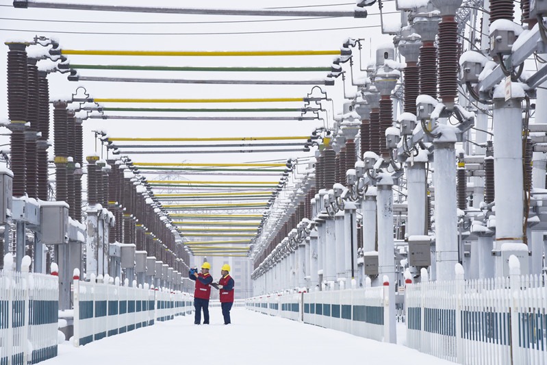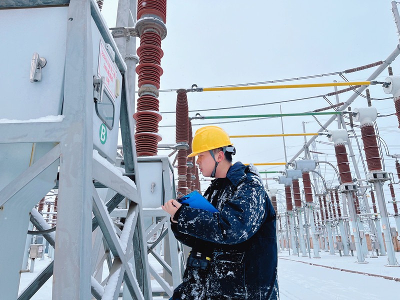 12月13日,國網(wǎng)烏魯木齊供電公司運(yùn)維人員在220千伏三宮變電站開展雪天特巡,詳細(xì)檢查站內(nèi)一二次設(shè)備及輔助設(shè)備運(yùn)行情況。(孫雪桐攝)