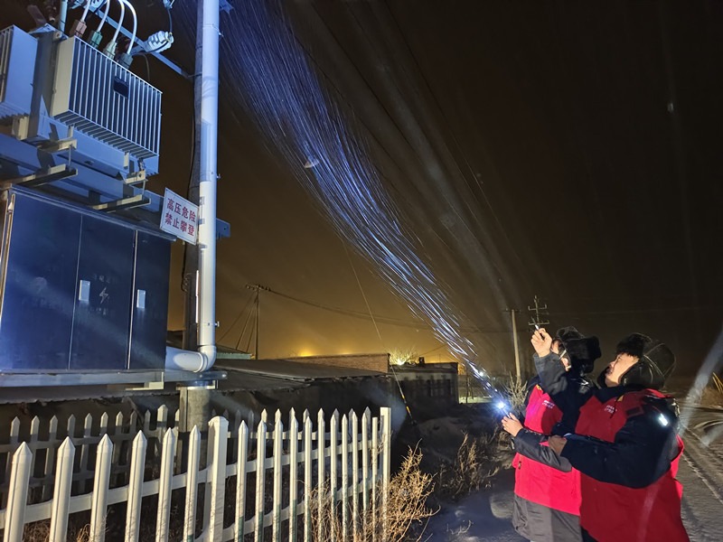 12月12日,國網(wǎng)奎屯供電公司組織黨員突擊隊(duì)對開干齊鄉(xiāng)電采暖公變進(jìn)行夜間巡視。(馬文強(qiáng)攝)