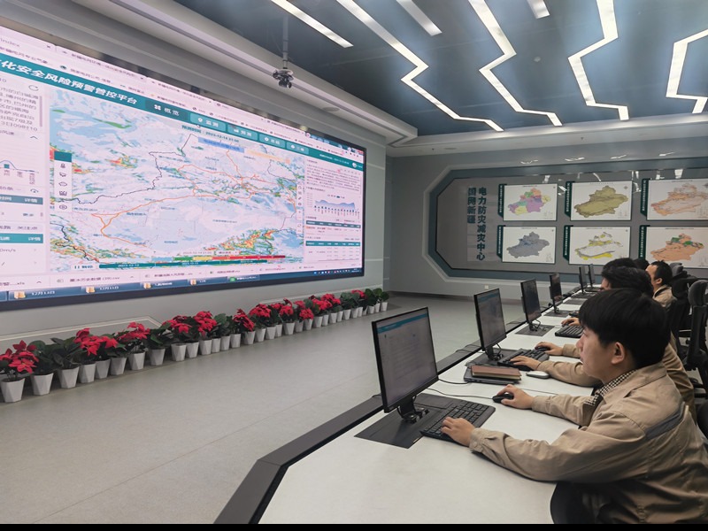 12月13日,國網(wǎng)新疆電科院員工在防災(zāi)減災(zāi)中心實(shí)時監(jiān)測新疆氣象變化情況。(唐浩攝)