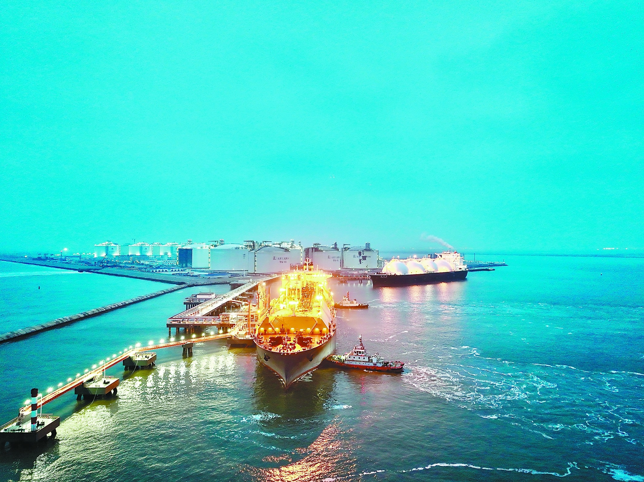 12月11日,來自印度尼西亞“恩施丸”號、美國“塞納河”號液化天然氣運(yùn)輸船相繼靠泊天然氣分公司天津LNG接收站1號、2號泊位,接卸液化天然氣13萬噸,這是國內(nèi)首次“雙船雙泊位”天然氣接卸同時作業(yè)。進(jìn)入供暖季以來,該站已累計(jì)接卸11船70萬噸液化天然氣,為保障人民群眾溫暖過冬備足“底氣”。(王軍 攝 王卓然 文)