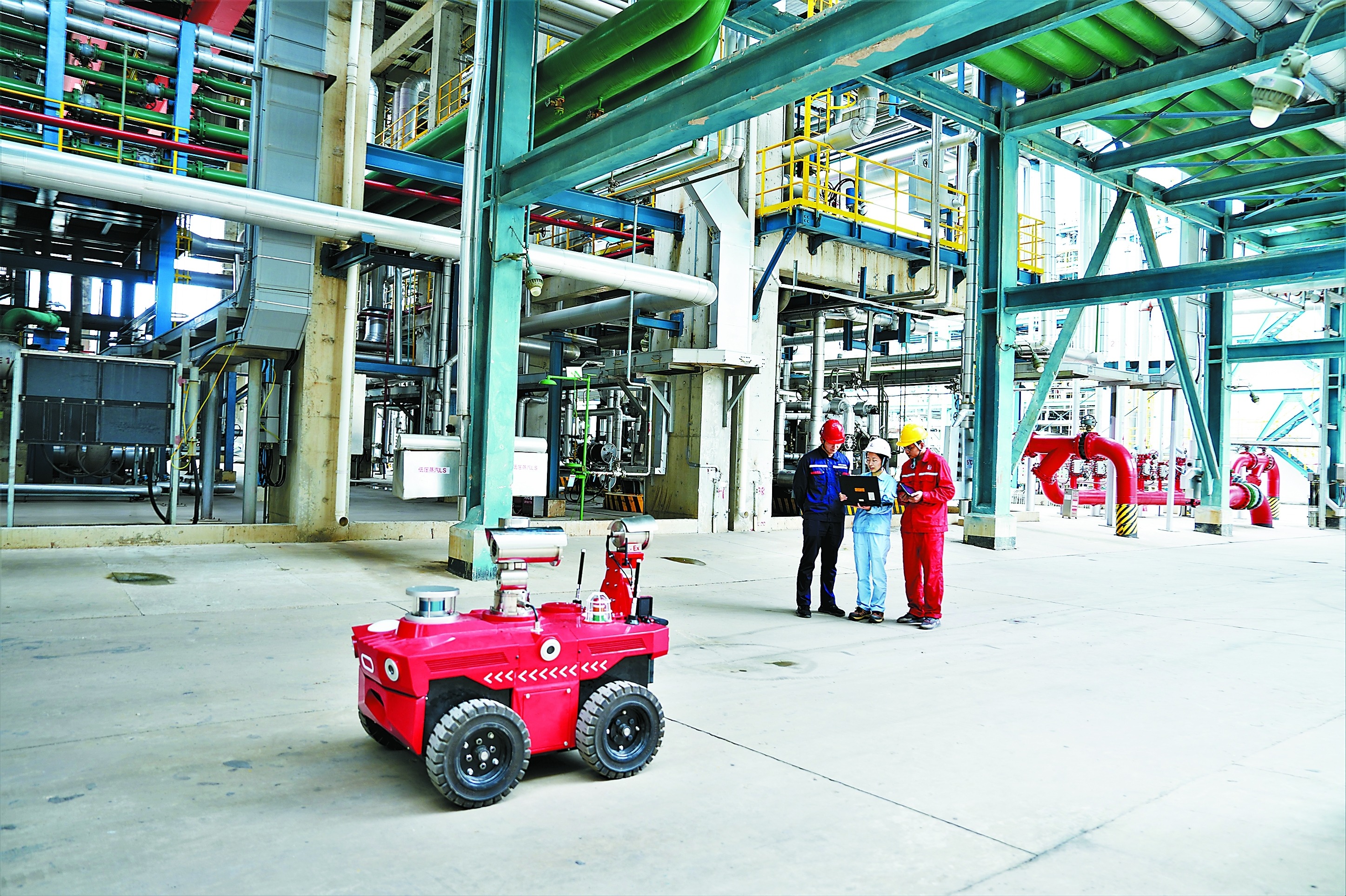 圖為近日防爆式巡檢機(jī)器人在EVA(乙烯-醋酸乙烯共聚物)裝置區(qū)域巡檢。
