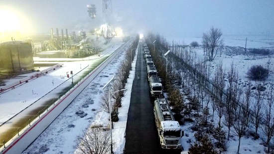 1月8日凌晨,中國石油運輸公司的車隊從長慶油田蘇里格氣田出發(fā),迎風踏雪,執(zhí)行天然氣配送任務。
