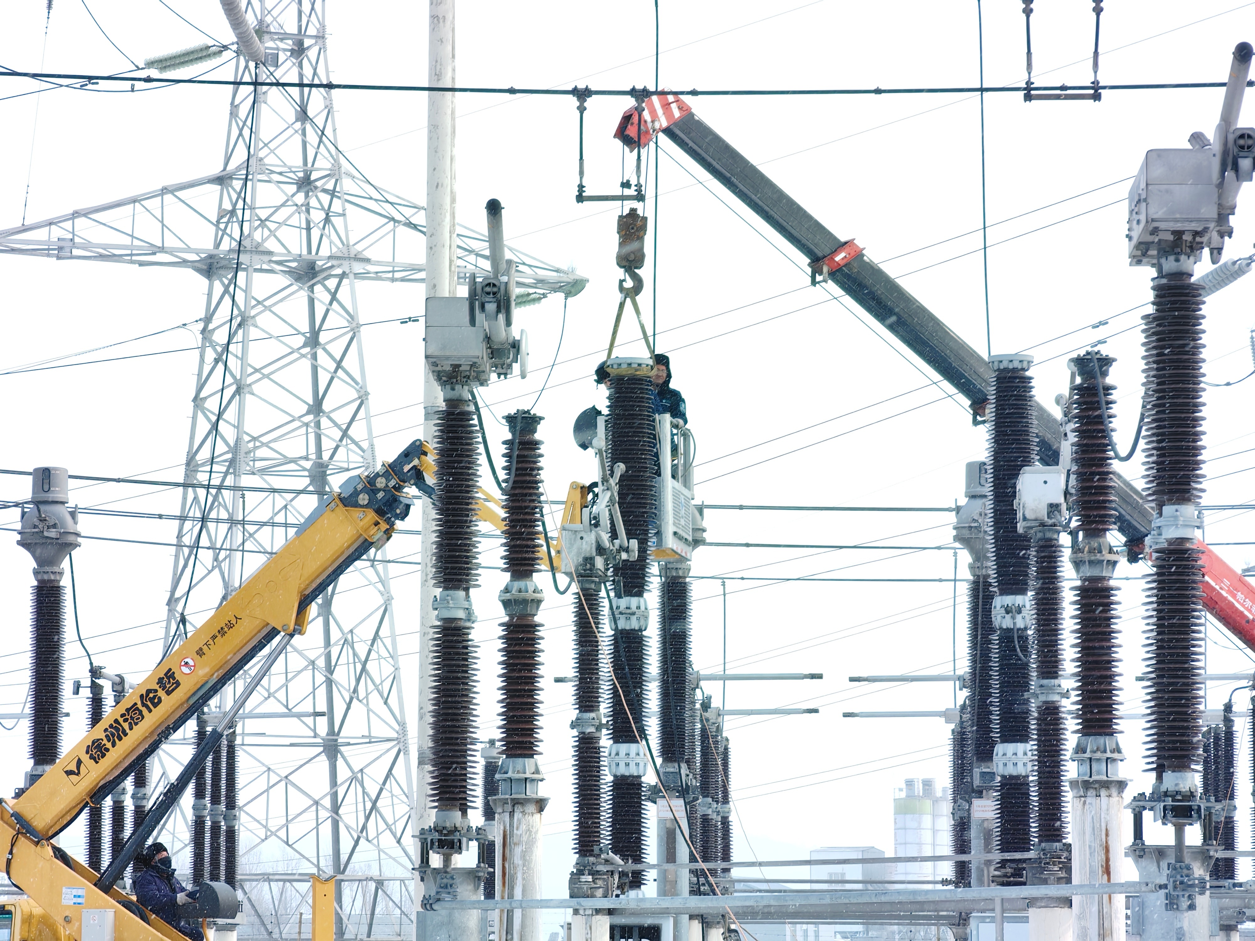 中國能源新聞網訊(孫德龍)1月11日,國網吉林延邊供電公司變電檢修中心員工在220千伏敦化變電站冒雪更換1號主變220千伏側斷路器C相滅弧室。
