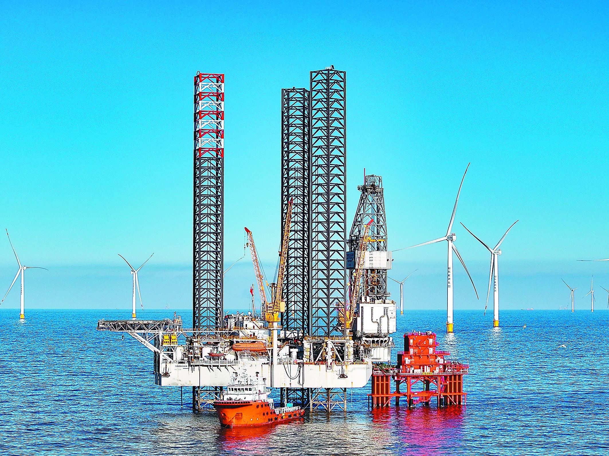 圖為1月7日新勝利二號(hào)平臺(tái)對(duì)海上埕北208B-5油井進(jìn)行完井作業(yè)。