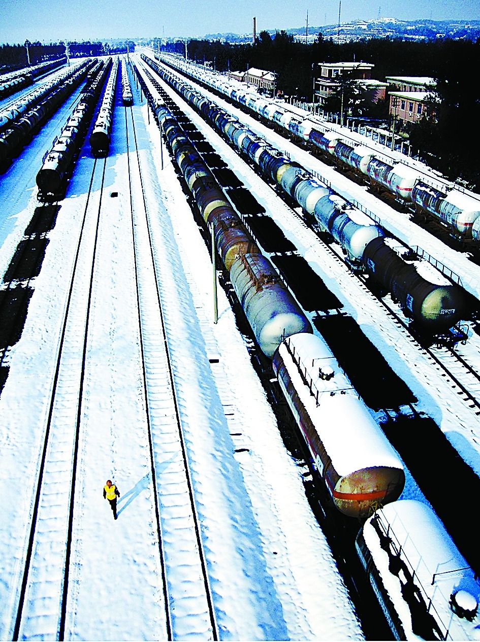 1月16日,洛陽(yáng)石化員工加強(qiáng)鐵路運(yùn)輸專(zhuān)用線安全檢查,確保產(chǎn)品安全出廠。