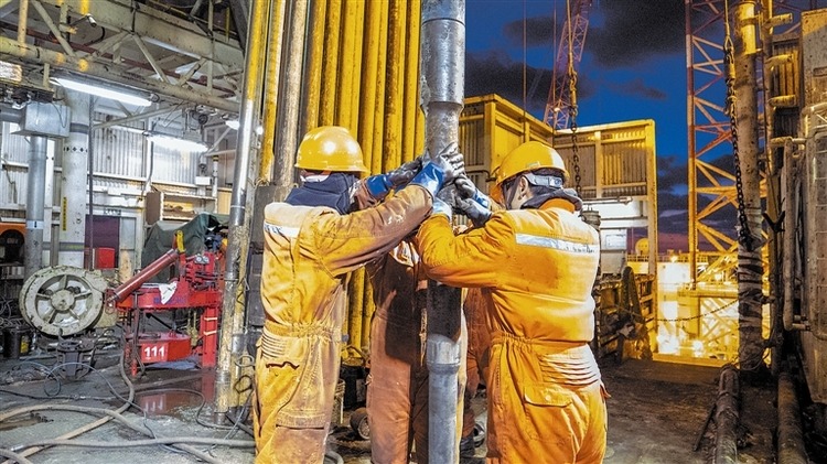 工人正在鉆井作業(yè)。中國海油天津分公司供圖