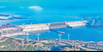 圖為1月24日,正在穩(wěn)健運(yùn)行的三峽大壩和外送輸電線(xiàn)路。鄭家裕 攝(影像中國(guó))
