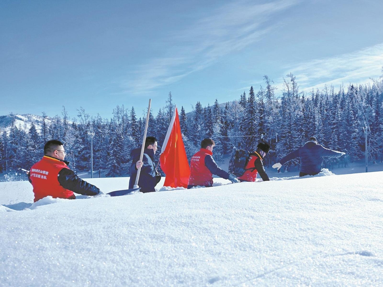 近日,新疆阿勒泰氣溫已降至零下32攝氏度,該地區(qū)普降大雪。大雪將通往110千伏云杉變電站的道路深深掩埋,積雪厚度將近1.2米。國網(wǎng)新疆阿勒泰供電公司員工從雪中鏟出一條道路,從1月17日至27日,每天前往110千伏云杉變電站,清掃設備積雪,保障供電安全。(王珞珺)
