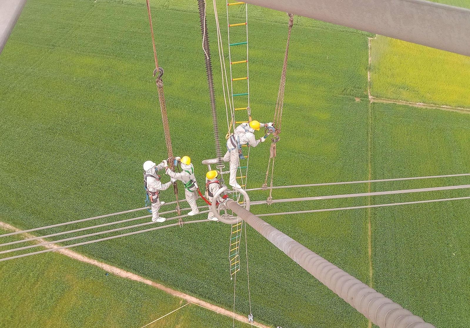 2月27日,檢修人員更換線路復(fù)合絕緣子。