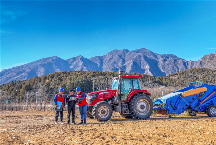 國網(wǎng)北京昌平供電公司員工在十三陵鎮(zhèn)泰陵園村田間地頭宣傳安全用電知識(shí)。