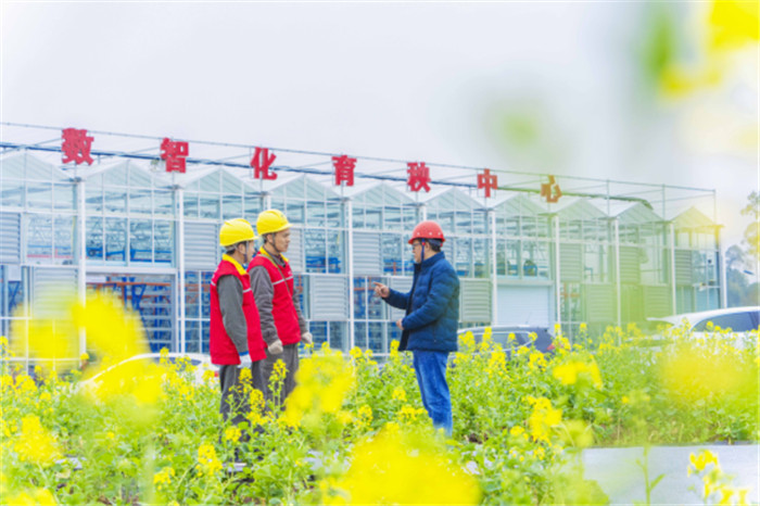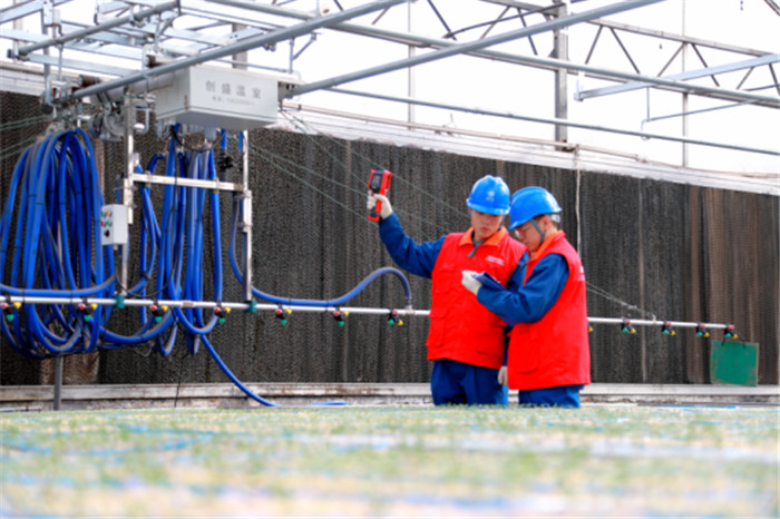 國網(wǎng)山西呂梁供電公司員工在孝義市溫室育苗基地檢查用電設(shè)備。