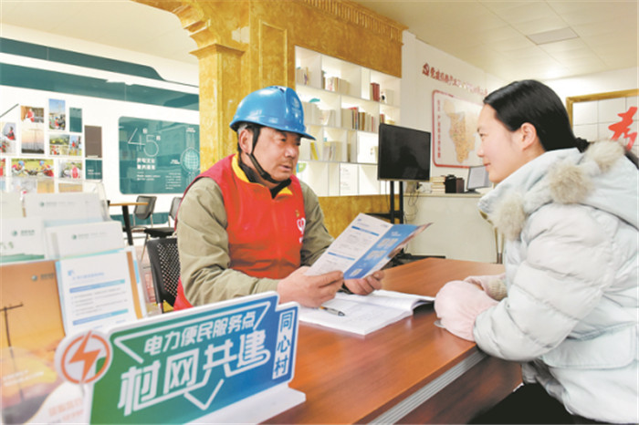 國網(wǎng)湖北電力員工在電力便民服務(wù)點(diǎn)受理村民用電業(yè)務(wù)咨詢。