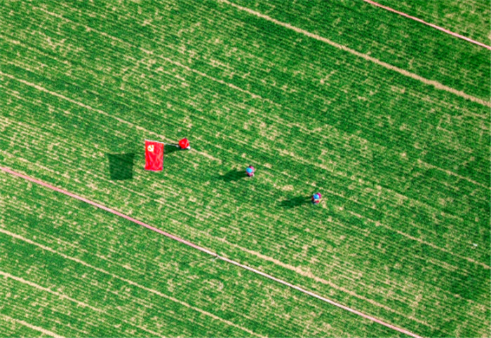 國家電網(wǎng)黑龍江電力共產(chǎn)黨員服務(wù)隊(duì)隊(duì)員使用無人機(jī)巡檢10千伏先鋒線,保障春耕期間種植戶可靠用電。