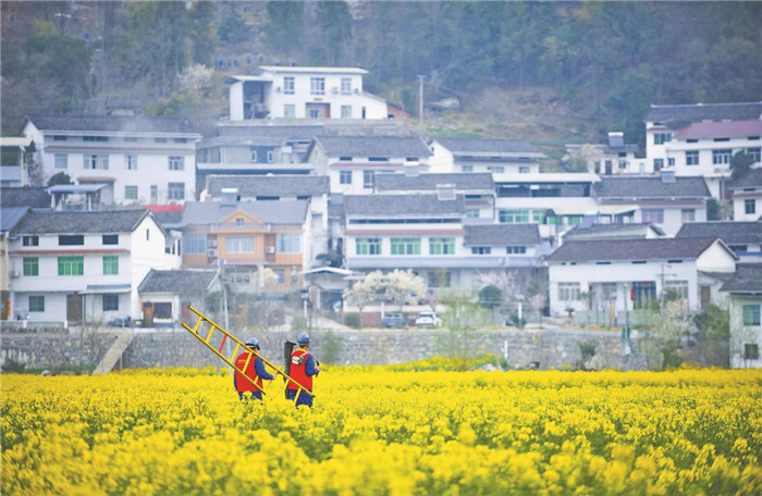 國網(wǎng)河南焦作供電公司員工走進(jìn)田間地頭排查春耕春灌用電線路安全隱患。