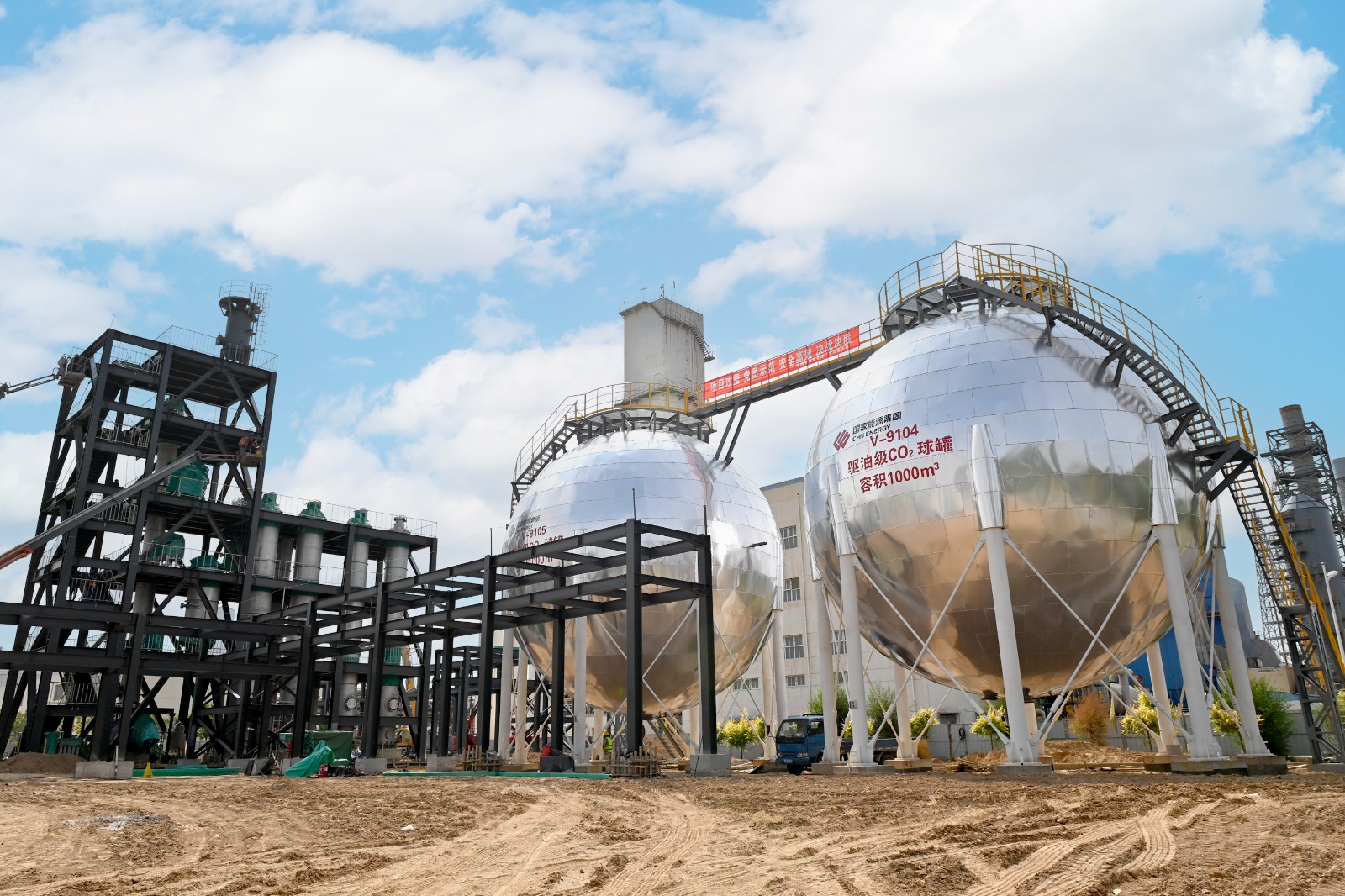 圖為寧夏300萬(wàn)噸/年CCUS示范項(xiàng)目建設(shè)現(xiàn)場(chǎng)