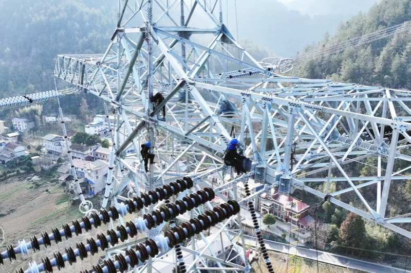 2月25日,在位于湖北省巴東縣清太坪鎮(zhèn)的±800千伏寧夏—湖南特高壓直流輸電工程(鄂2標)施工現(xiàn)場,國網(wǎng)湖北送變電工程有限公司組織施工人員開展附件安裝作業(yè)。該工程鄂2標段新建鐵塔159基、線路66.224千米,當前處于導(dǎo)地線展放、附件安裝階段。
