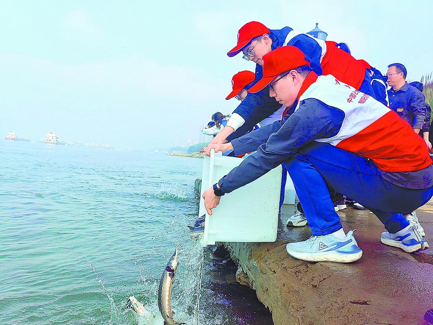 日前,由長(zhǎng)江湖北宜昌中華鱘自然保護(hù)區(qū)管理處主辦的中華鱘增殖放流活動(dòng),在宜昌市燈塔廣場(chǎng)江畔舉行。湖北石油積極參與,以實(shí)際行動(dòng)守護(hù)長(zhǎng)江生態(tài)。此次放流的1400尾小中華鱘均植入了PIT射頻標(biāo)記,便于科研人員持續(xù)跟蹤監(jiān)測(cè)。圖為湖北宜昌石油員工放流小中華鱘。