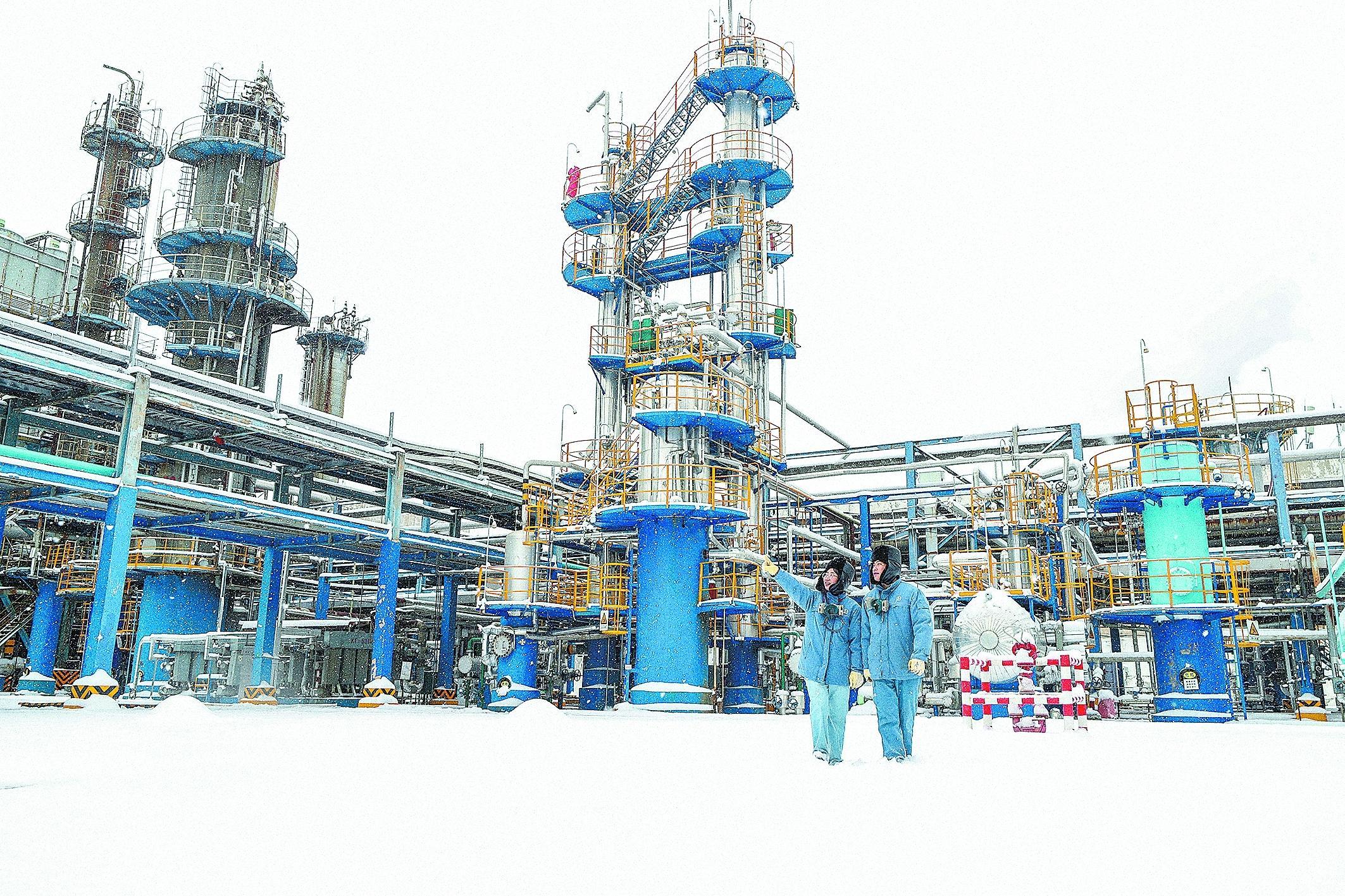 圖為1月17日中壓加氫裝置員工在巡檢。李雪 攝 趙雨菲 文
