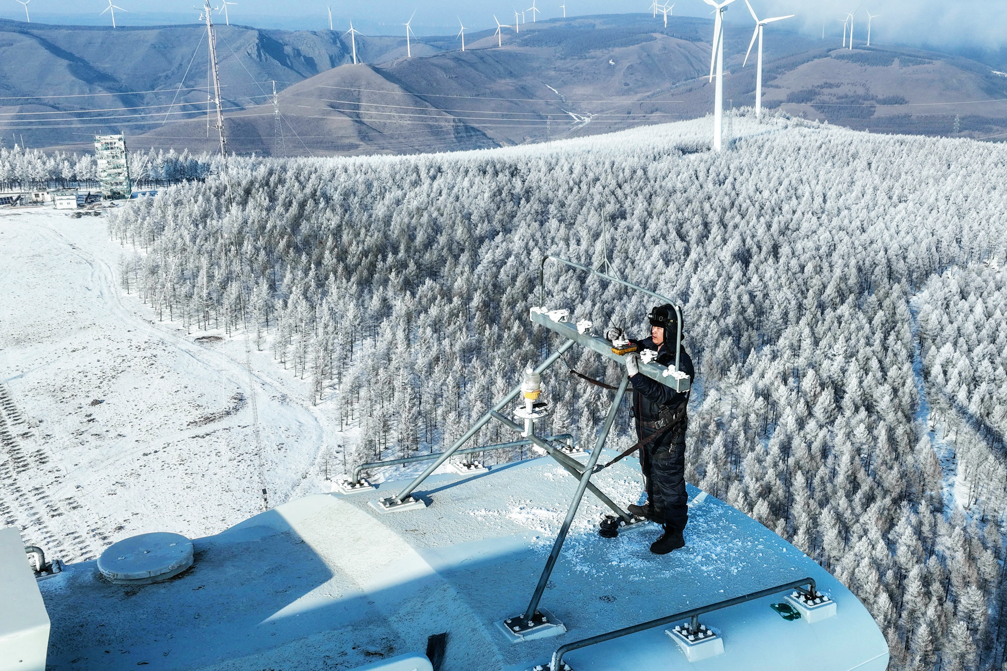 2月27日,龍源河北公司運檢員積極參與保供工作,及時處理因寒潮凍結(jié)的風速儀故障,以堅守與擔當護航兩會。王宏宇攝