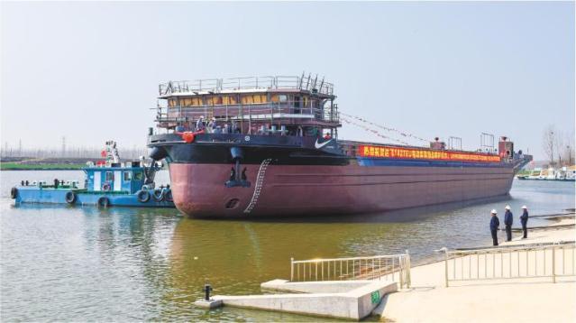 原標(biāo)題:國產(chǎn)首艘出口純電動力內(nèi)河集裝箱運(yùn)輸船在鄒城下水 山東造“綠舟”駛向國際市場