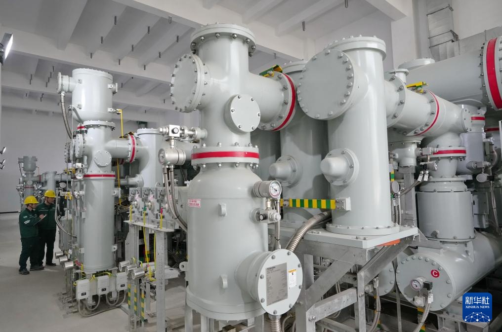 3月24日,國網(wǎng)雄安新區(qū)供電公司員工在昝西220千伏變電站內(nèi)巡檢。