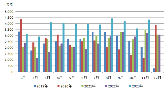 圖5 2019—2023年煤炭月度進(jìn)口量