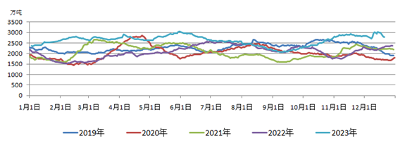 圖7 北方九港庫(kù)存合計(jì)年度對(duì)比