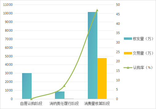 從2017年首次啟動(dòng)至今,我國(guó)綠證市場(chǎng)大體上經(jīng)歷了自愿認(rèn)購(gòu)、消納責(zé)任履行、消費(fèi)量核算三個(gè)階段。