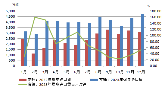 圖6 2023年煤炭月度進(jìn)口量