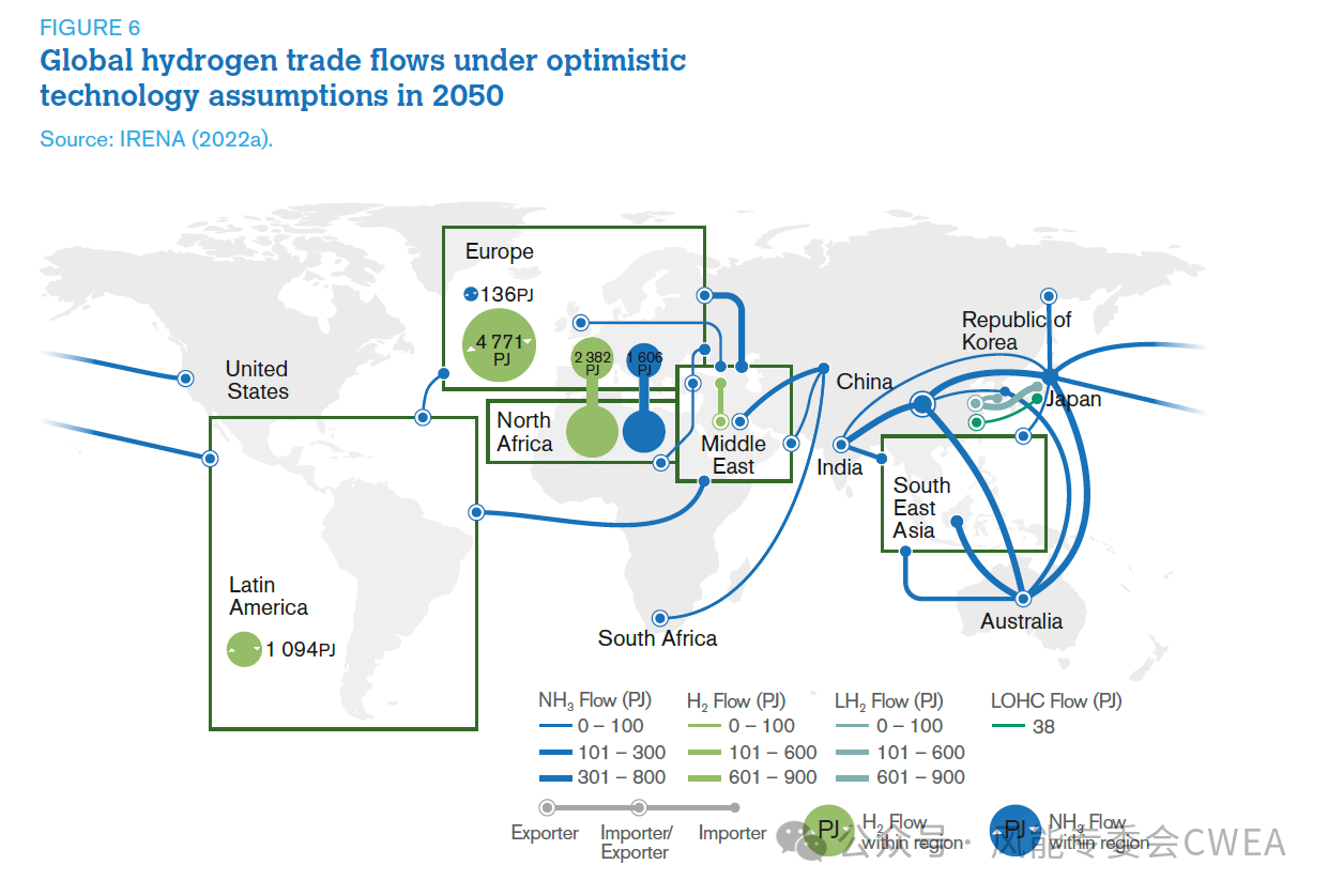 國(guó)際可再生能源署(IRENA)和世界貿(mào)易組織(WTO)聯(lián)合發(fā)布的報(bào)告《國(guó)際貿(mào)易與綠色氫能:支持全球向低碳經(jīng)濟(jì)過(guò)渡》(International trade and green hydrogen:Supporting the global transition to a low-carbon economy)深入分析了當(dāng)前和未來(lái)的全球綠氫貿(mào)易動(dòng)態(tài),并概要描述了推動(dòng)綠色氫能市場(chǎng)發(fā)展的幾個(gè)關(guān)鍵政策要素。