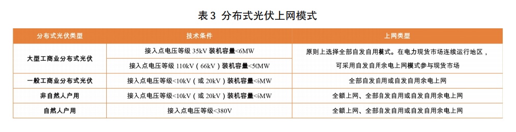 用戶側(cè)新能源配儲(chǔ)主要是分布式光伏和分散式風(fēng)電項(xiàng)目配儲(chǔ),以分布式光伏配儲(chǔ)為例,根據(jù)國家能源局2025年1月印發(fā)的《分布式光伏發(fā)電開發(fā)建設(shè)管理辦法》(國能發(fā)新能規(guī)〔2025〕7號(hào)),分布式光伏發(fā)電分為自然人戶用、非自然人戶用、一般工商業(yè)和大型工商業(yè)4種類型,分布式光伏上網(wǎng)模式包括全額上網(wǎng)、全部自發(fā)自用、自發(fā)自用余電上網(wǎng)3種,具體如表3。