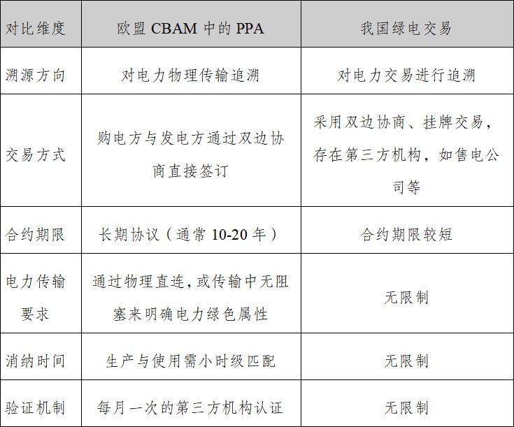 我國(guó)綠電交易與CBAM機(jī)制下PPA的差異