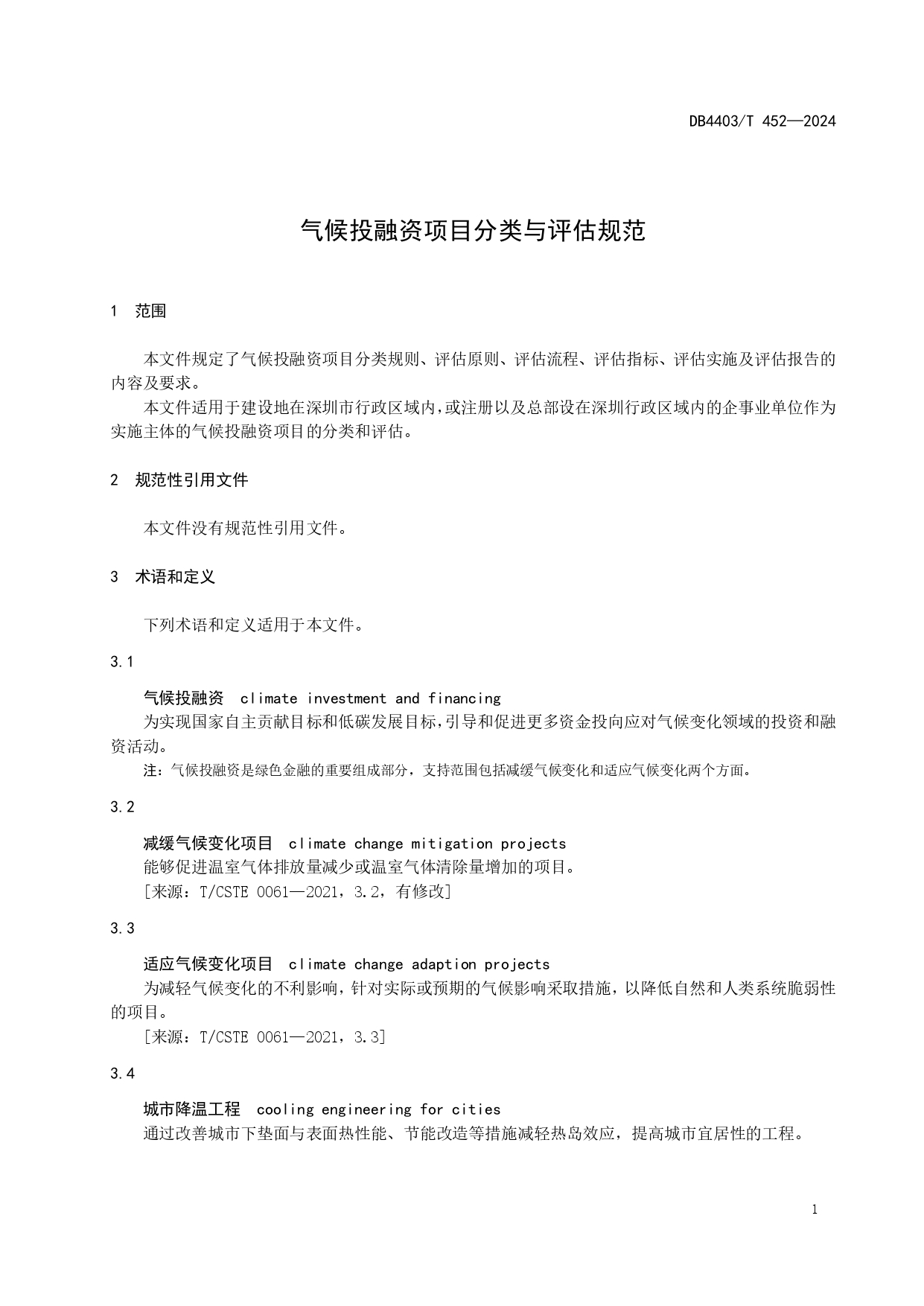 為更好地支撐深圳市氣候投融資工作的開(kāi)展,充分發(fā)揮標(biāo)準(zhǔn)的預(yù)期引導(dǎo)和倒逼促進(jìn)作用,2024年5月29日,深圳市批準(zhǔn)發(fā)布DB4403/T 452—2024《氣候投融資項(xiàng)目分類與評(píng)估規(guī)范》(以下簡(jiǎn)稱《規(guī)范》)。《規(guī)范》由深圳市生態(tài)環(huán)境局牽頭編制,于2024年7月1日實(shí)施,是全國(guó)首個(gè)氣候投融資地方標(biāo)準(zhǔn)。