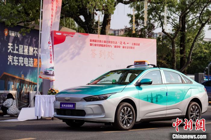 現(xiàn)場交付的新能源出租車。活動方供圖