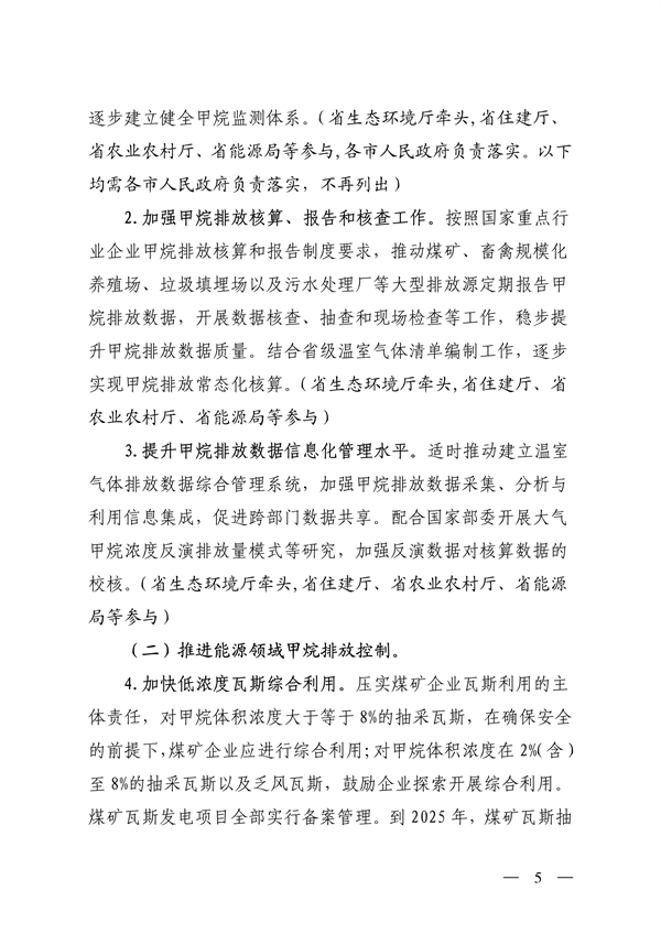 山西省生態(tài)環(huán)境廳等12部門(mén)印發(fā)《推進(jìn)甲烷排放控制行動(dòng)實(shí)施方案》,目標(biāo)“十四五”期間,甲烷排放控制政策、技術(shù)和標(biāo)準(zhǔn)體系逐步建立,甲烷排放統(tǒng)計(jì)核算、監(jiān)測(cè)監(jiān)管等基礎(chǔ)能力逐步提升,甲烷資源化利用和排放控制工作取得積極進(jìn)展。煤礦瓦斯利用技術(shù)不斷完善,綜合利用效率有效提升,養(yǎng)殖業(yè)單位農(nóng)產(chǎn)品甲烷排放強(qiáng)度穩(wěn)中有降,城市生活垃圾資源化利用率和城市污泥無(wú)害化處置率持續(xù)提升。