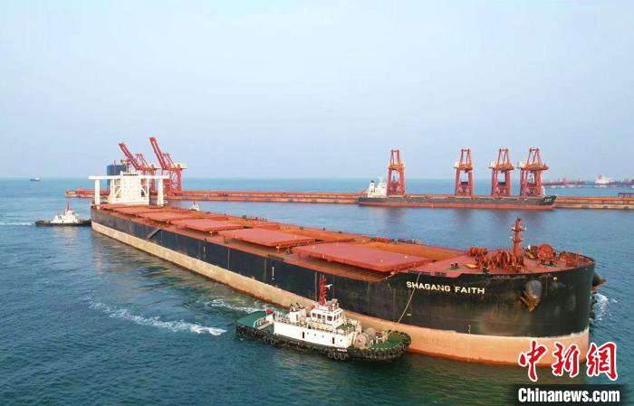 10月13日,“沙鋼信心”輪在山東港口煙臺港完成卸船。張超攝