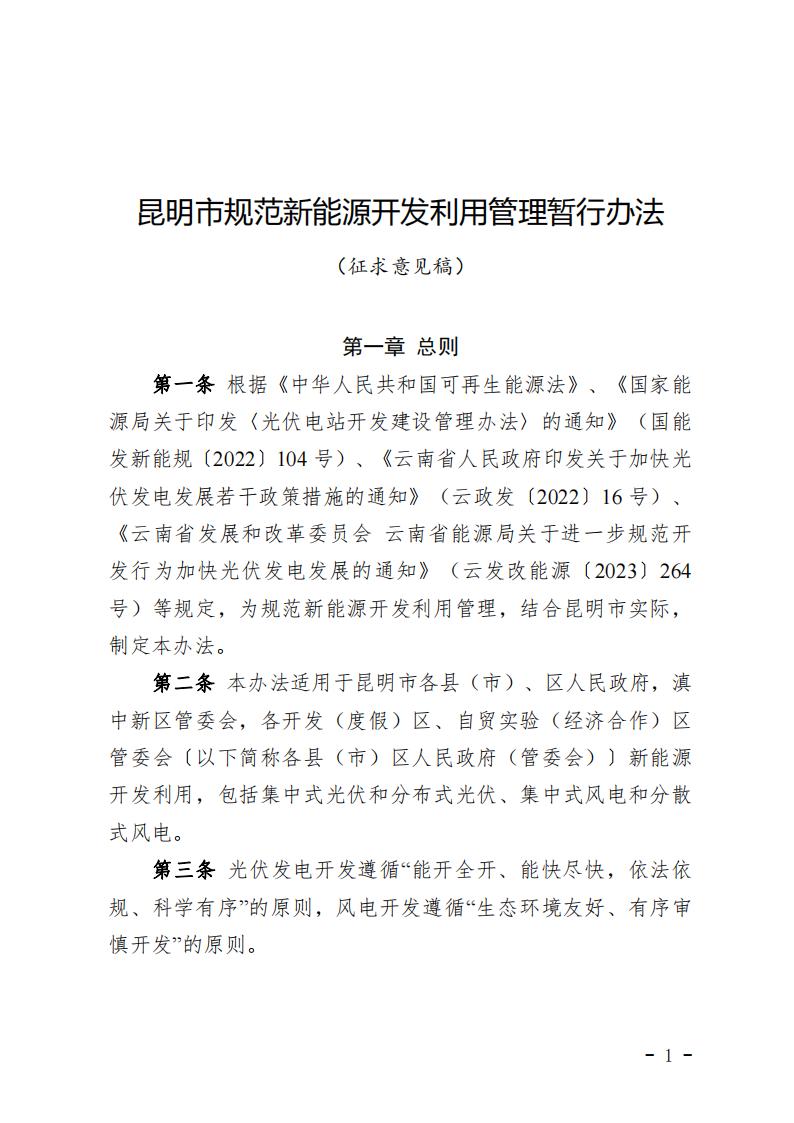 附件1:昆明市規(guī)范新能源開發(fā)利用管理暫行辦法(征求意見稿)