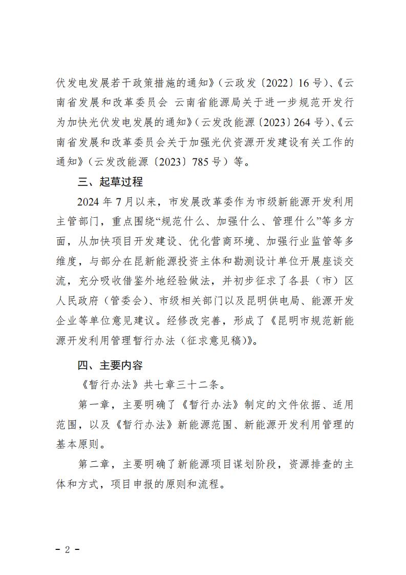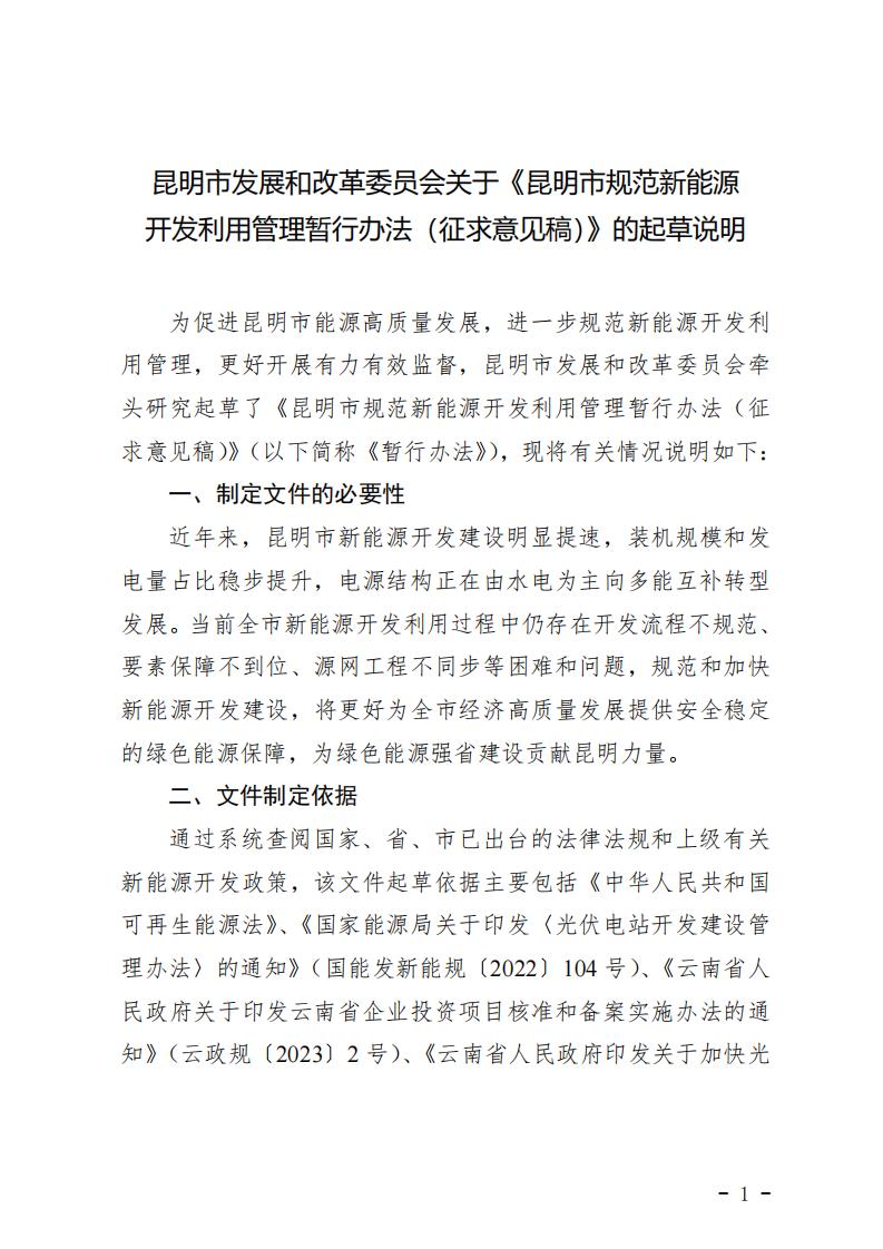 附件2:昆明市發(fā)展和改革委員會關(guān)于《昆明市規(guī)范新能源開發(fā)利用管理暫行辦法(征求意見稿)》的起草說明